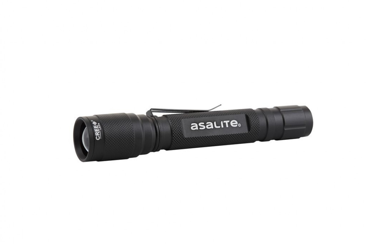 Funcționarea lămpii cu LED Asalite 3W cu acumulator este asigurată de un LED CREE extra luminos cu putere de 3W. Produsul are trei funcții. Pe lângă capacitatea de a regla cele două niveluri de luminozitate, dispune și de un mod SOS, precum și de o funcție ZOOM.