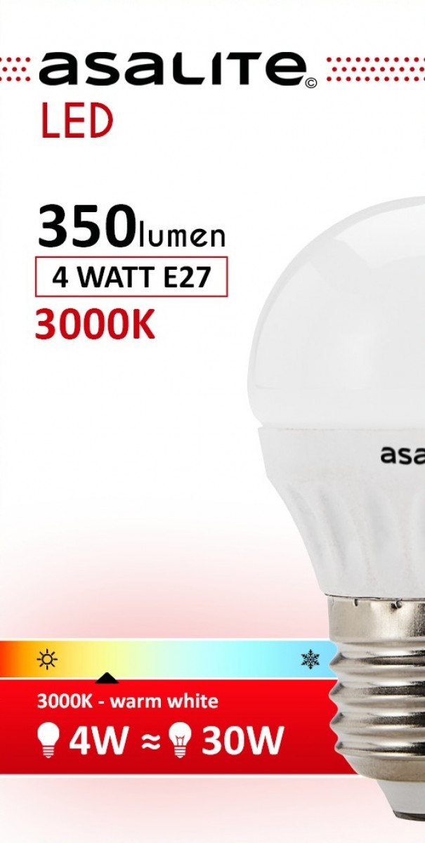 Asalite E27 4W G45 Tip Glob mic 3000K 350 Lumen