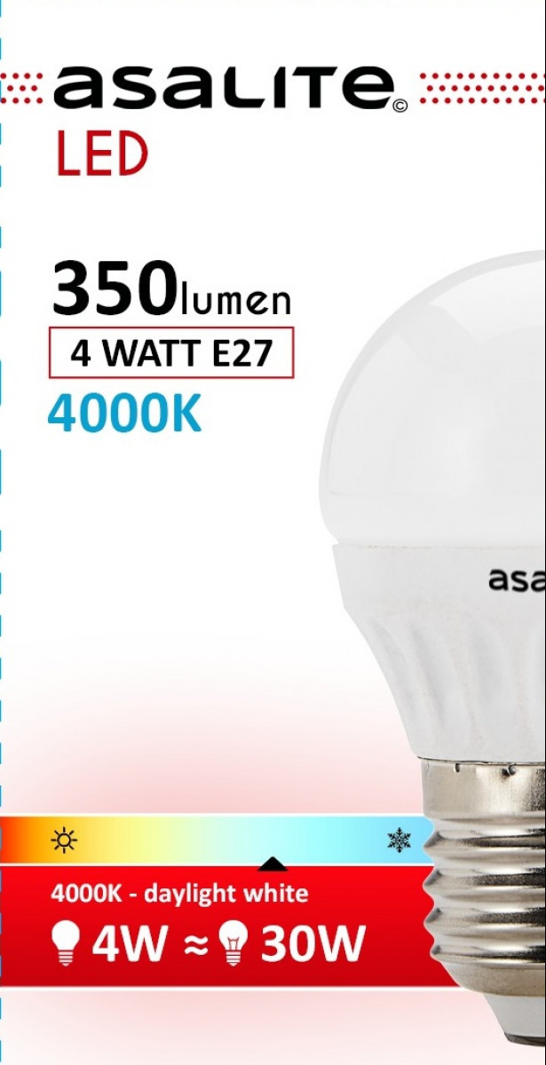 Asalite E27 4W G45 Tip Glob mic 4000K 350 Lumen