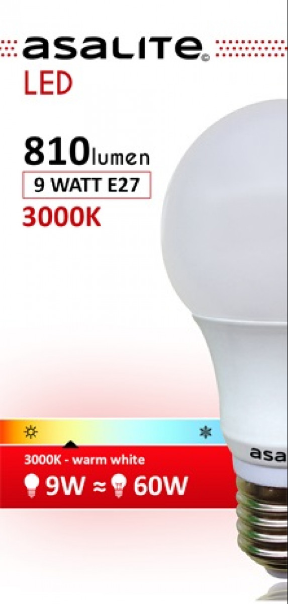 Becul cu LED Asalite E27 9W A60 corespunde utilizării unui bec convențional, comparativ cu care poate rezista de până la cincizeci de ori mai mult, timp în care poate realiza economii de energie de 90%, de aceea, o investiție mai mare realizată o dată are ca rezultat eficiența semnificativă a costurilor pe termen lung.