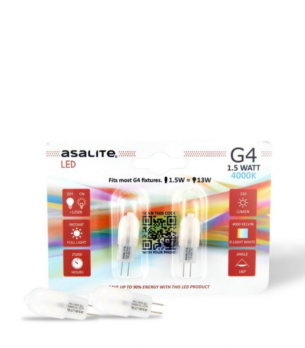 Becul cu LED Asalite G4 2W 22W corespunde utilizării unui bec convențional de 22W, comparativ cu care poate rezista de până la cincizeci de ori mai mult, timp în care poate realiza economii de energie de 90%, de aceea, o investiție mai mare realizată o dată are ca rezultat eficiența semnificativă a costurilor pe termen lung.