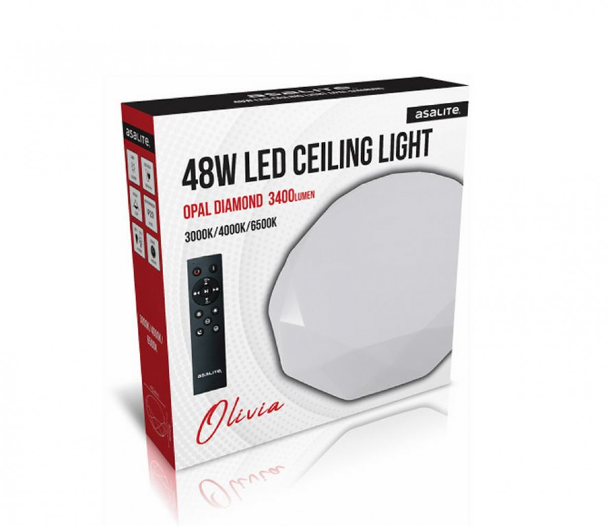 Asalite LED 48W 3-4-6.5K Plafoniera Tip Diamant Opal+Telecomanda Olivia Prezentarea