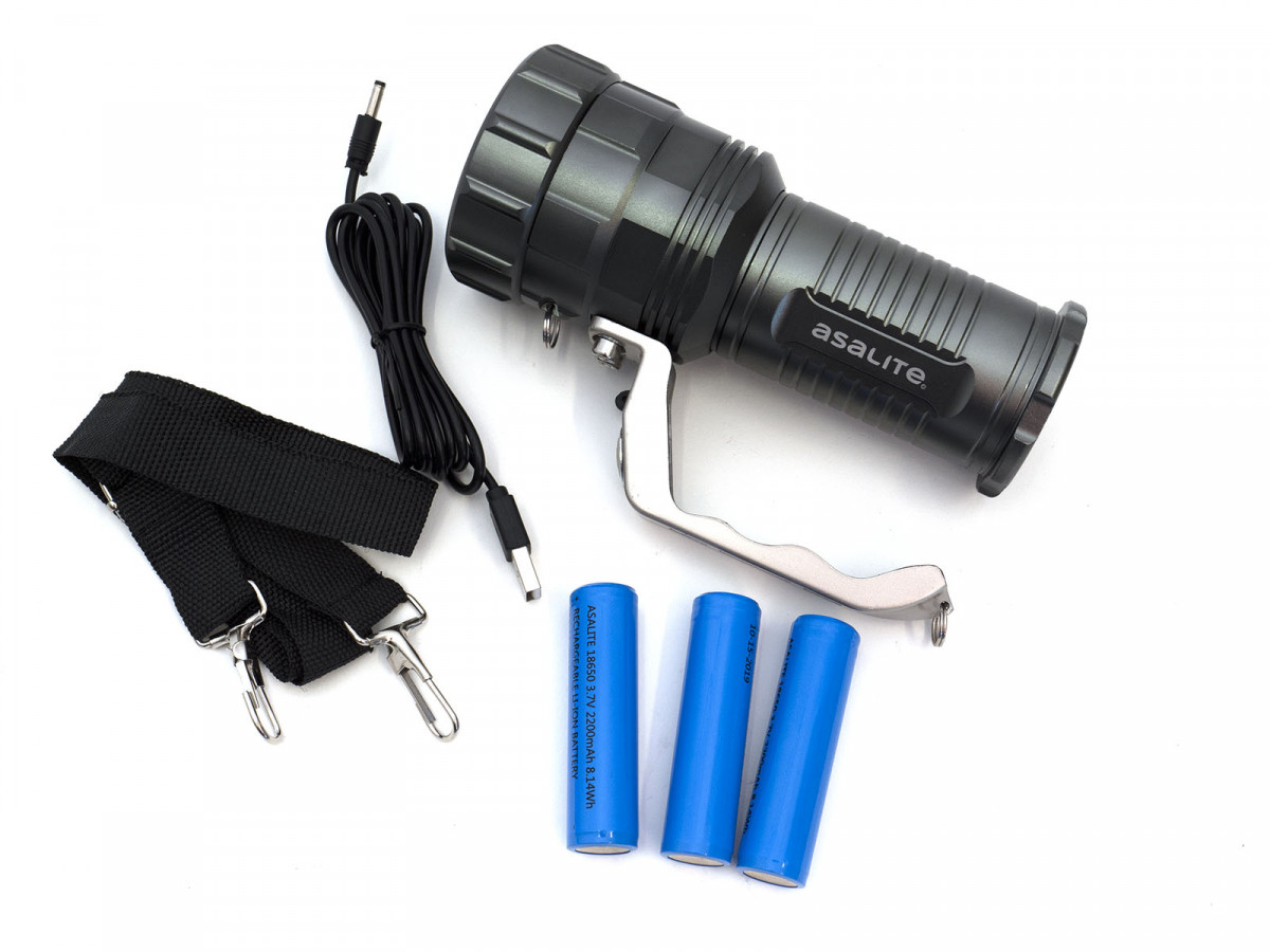 Lampa cu LED Asalite 10W cu acumulator este o lampă manuală cu trei funcții alimentată de un LED CREE extra luminos cu putere de 10W. Designul său sofisticat, dar robust, este în sine o garanție a longevității. Funcția maximă oferă un flux luminos excepțional de mare de 800 Lumeni. În plus, produsul are un standard de 400 Lumeni și un mod intermitent cu un flux luminos de 800 Lumeni. Pe lângă posibilitatea de reglare a intensității luminoase, poate fi utilizat și în funcția ZOOM, care permite iluminarea focalizată a unei ținte specifice.