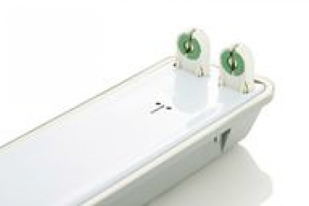 Lampa este potrivită pentru a primi 2 tuburi fluorescente LED T8 lungi de 150 cm cu soclu G13, care sunt introduse la un capăt.