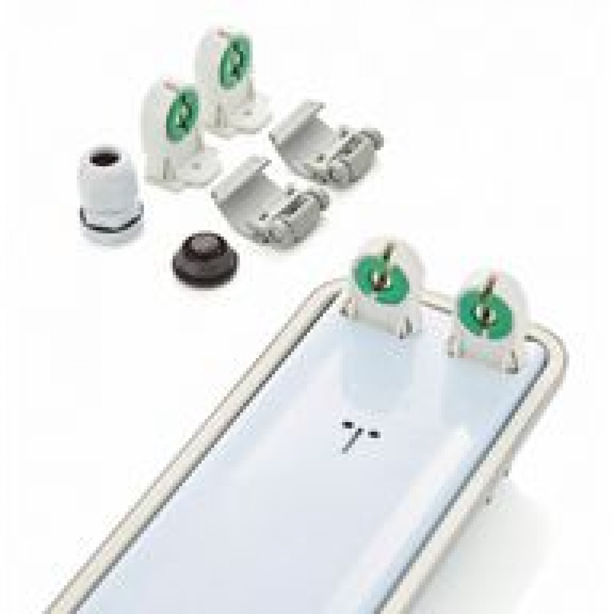 Corpul de iluminat este potrivit pentru a recepționa 2 tuburi fluorescente LED T8 cu soclu G13, lungime 60 cm, care sunt introduse la un capăt.