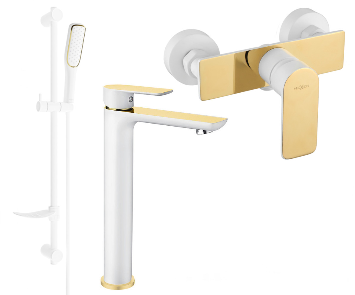 Mexen Alfa DF49 set de dus , alb / auriu - 745714DF49-25