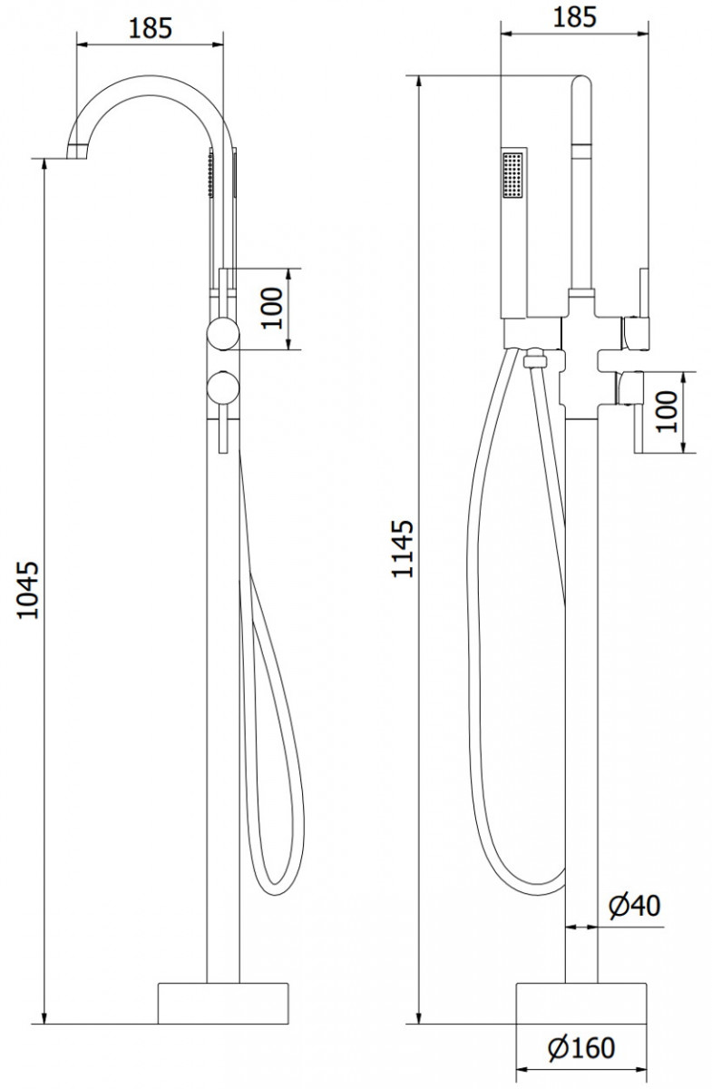 Mexen Alma freestanding baterie Cada , negru - 75033-70 Prezentarea