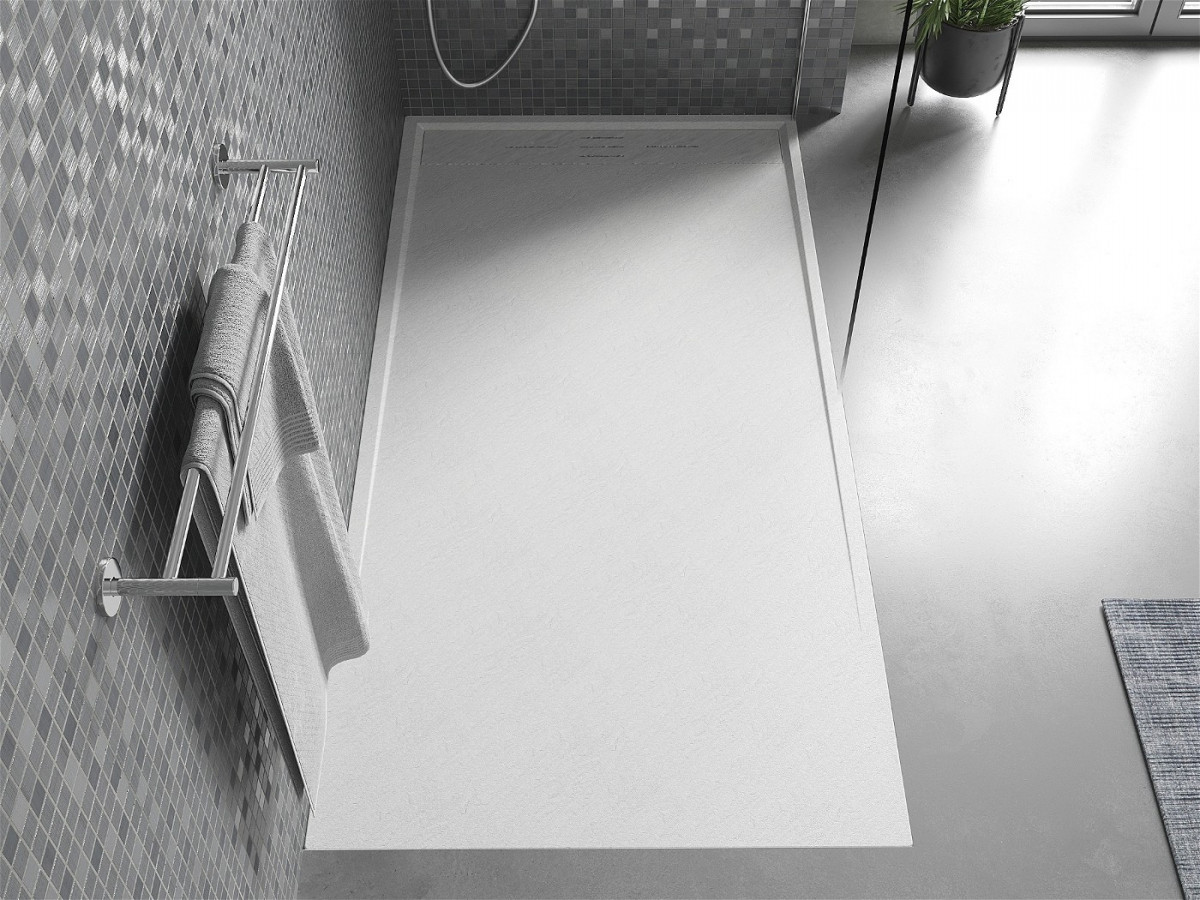 CadIă de duș subțiată cu efect de piatră Metxen, care combină cele mai recente tendințe în baie cu utilizarea practică. Poate fi instalat pe podea sau înfundat în podea, creând astfel o suprafață de duș plană cu pardoseala finală.
