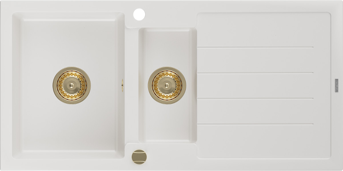 Mexen Andres Chiuveta bucatarie granit 1,5 cuva + picurator+ cadou pop up sifon 1000 x 500 mm, alb , sifon auriu - 6515101510-20-G Prezentarea