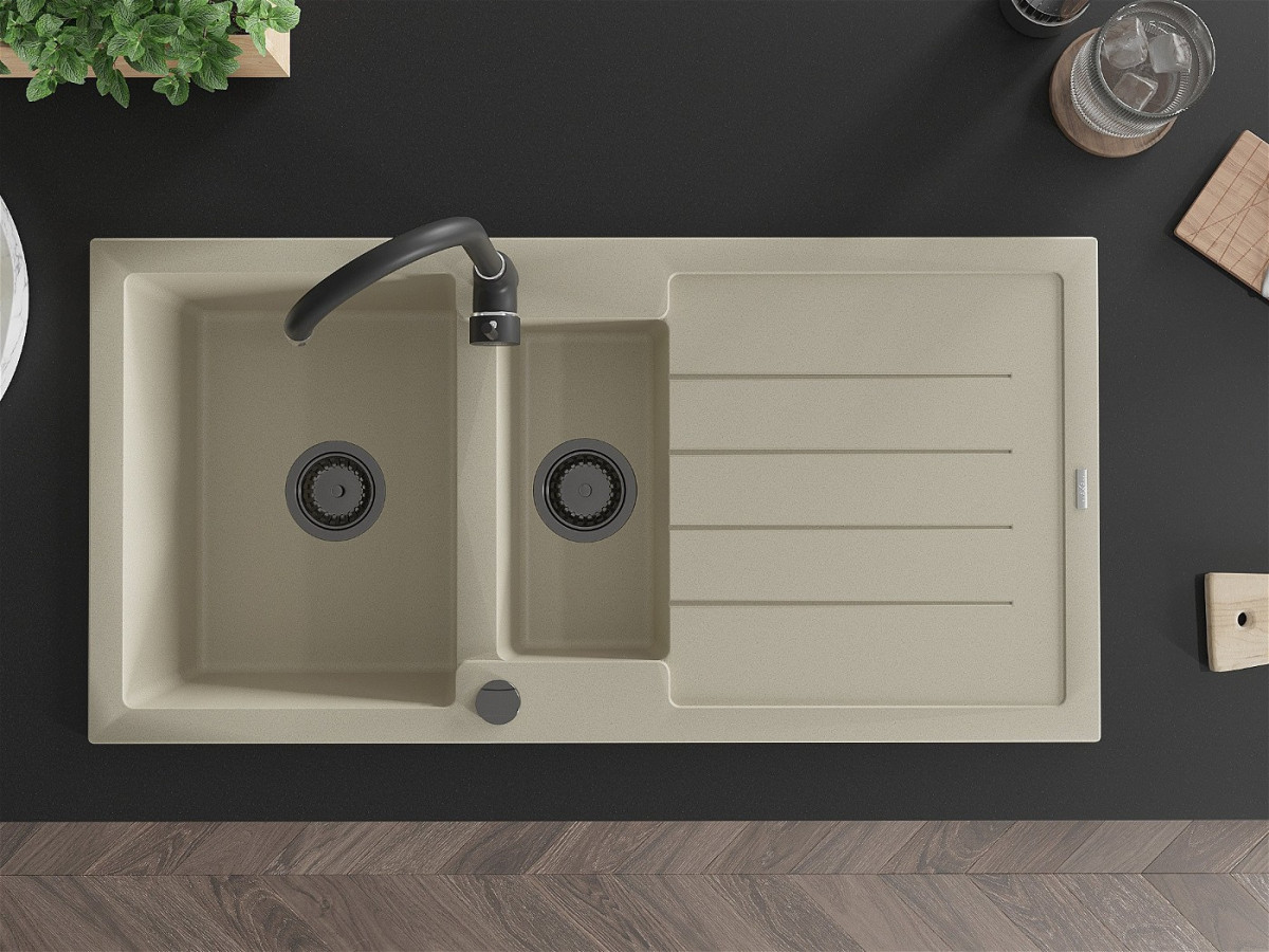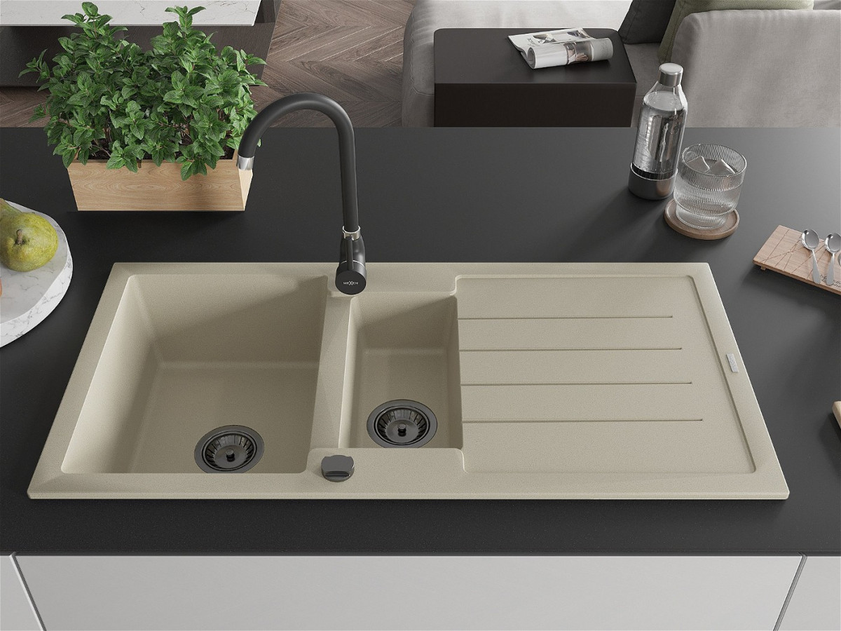 Mexen Andres Chiuveta bucatarie granit 1,5 cuva + picurator+ cadou pop up sifon 1000 x 500 mm, beige, sifon negru - 6515101510-69-B Prezentarea