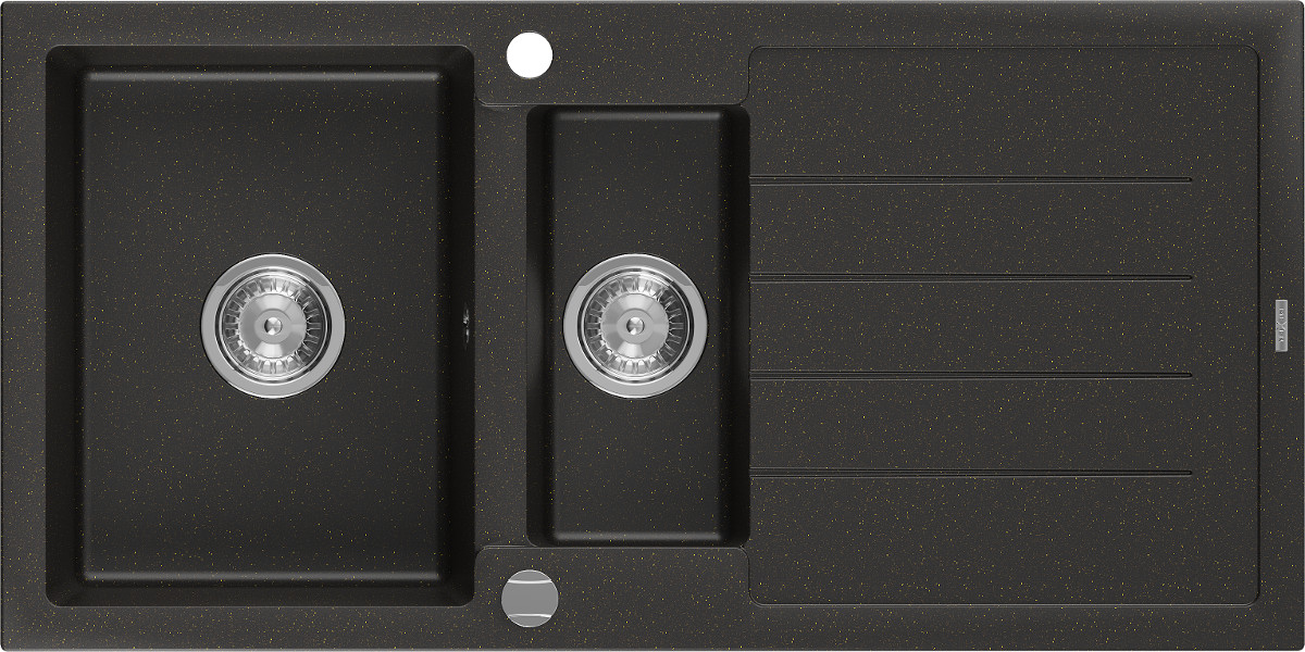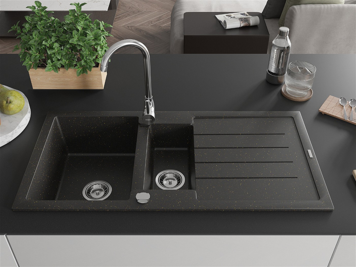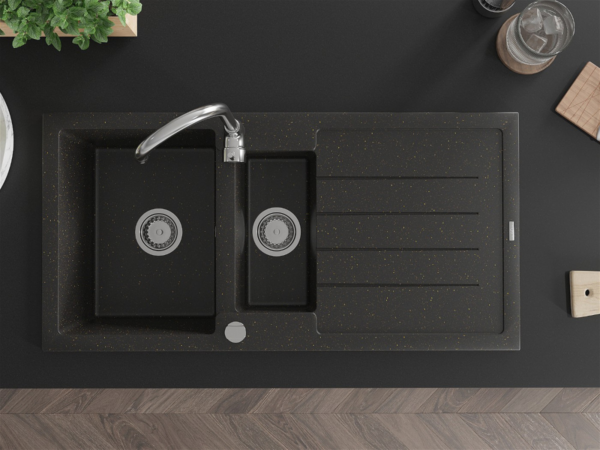 Mexen Andres Chiuveta bucatarie granit 1,5 cuva + picurator+ cadou pop up sifon 1000 x 500 mm, negru / auriu - 6515101510-75 Prezentarea