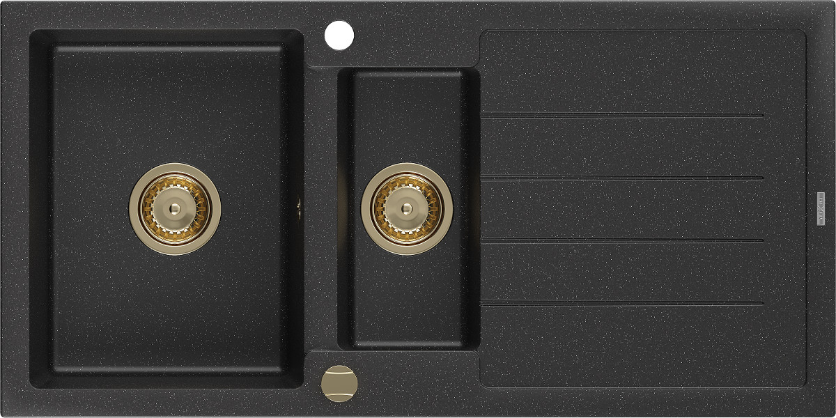 Mexen Andres   Chiuveta bucatarie granit 1,5 cuva + picurator+ cadou pop up sifon   1000 x 500 mm negru / chrom, sifon  auriu  - 6515101510-73-G