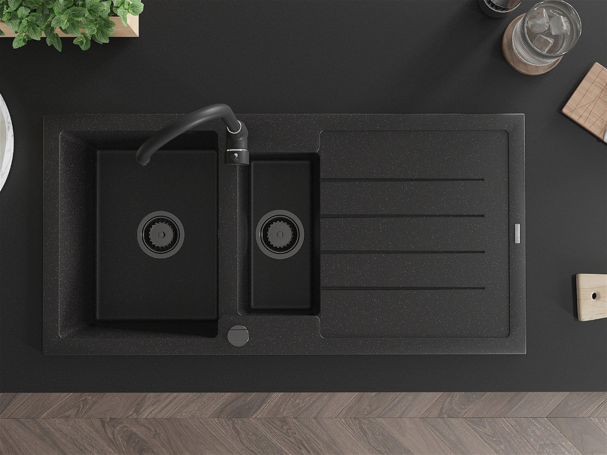 Mexen Andres Chiuveta bucatarie granit 1,5 cuva + picurator+ cadou pop up sifon 1000 x 500 mm negru / chrom sifon negru - 6515101510-73-B Prezentarea