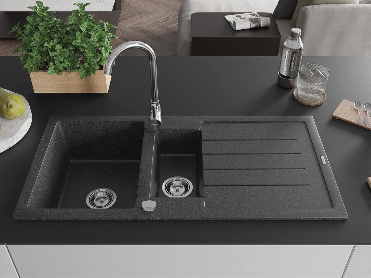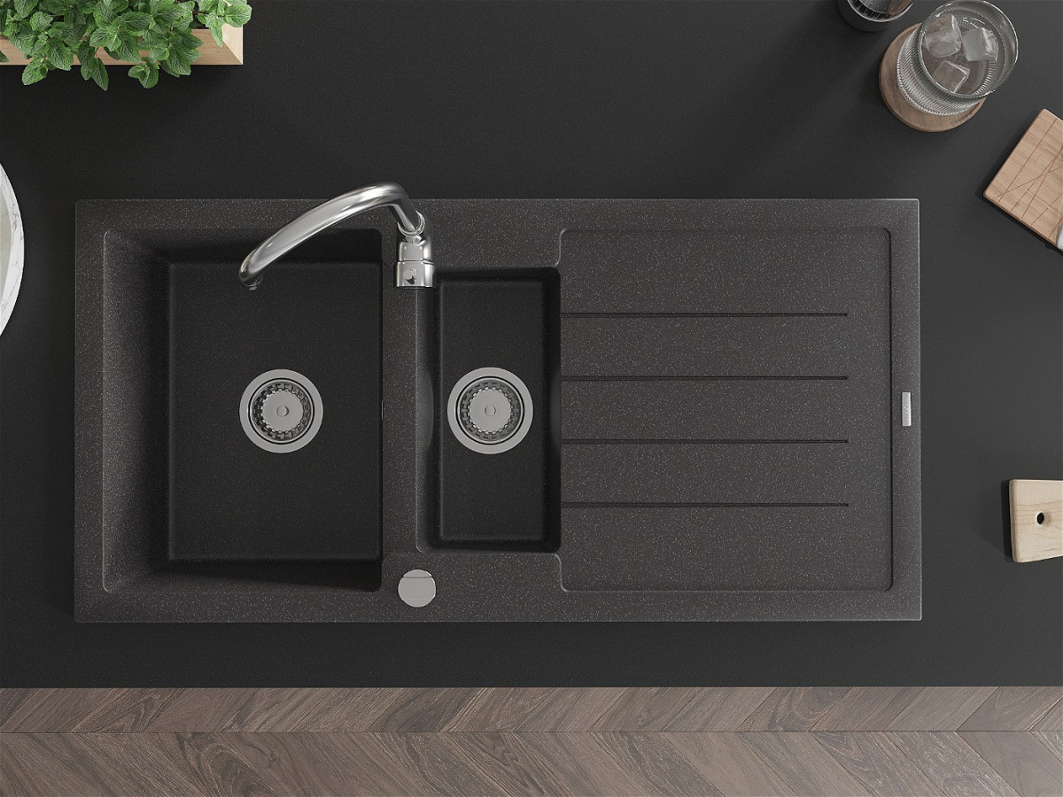 Mexen Andres Chiuveta bucatarie granit 1,5 cuva + picurator+ cadou pop up sifon 1000 x 500 mm, negru piatra - 6515101510-76 Prezentarea