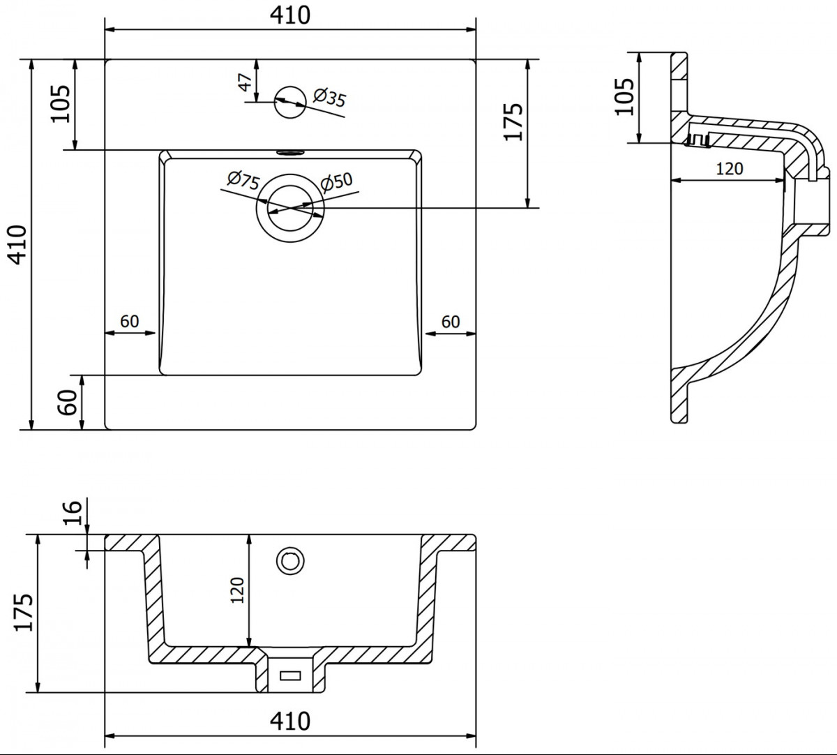 Mexen Atena Lavoar ingropat in blat 41 x 41 cm, alb - 25014100 Prezentarea