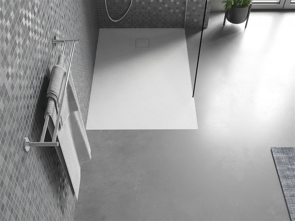 CadIă de duș subțiată cu efect de piatră Metxen, care combină cele mai recente tendințe în baie cu utilizarea practică. Poate fi instalat pe podea sau înfundat în podea, creând astfel o suprafață de duș plană cu pardoseala finală.