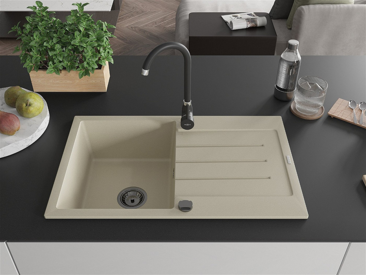 Mexen Bruno Chiuveta bucatarie granit 1 cuva + picurator+ cadou pop up sifon 795 x 495 mm, beige, sifon negru - 6513791010-69-B