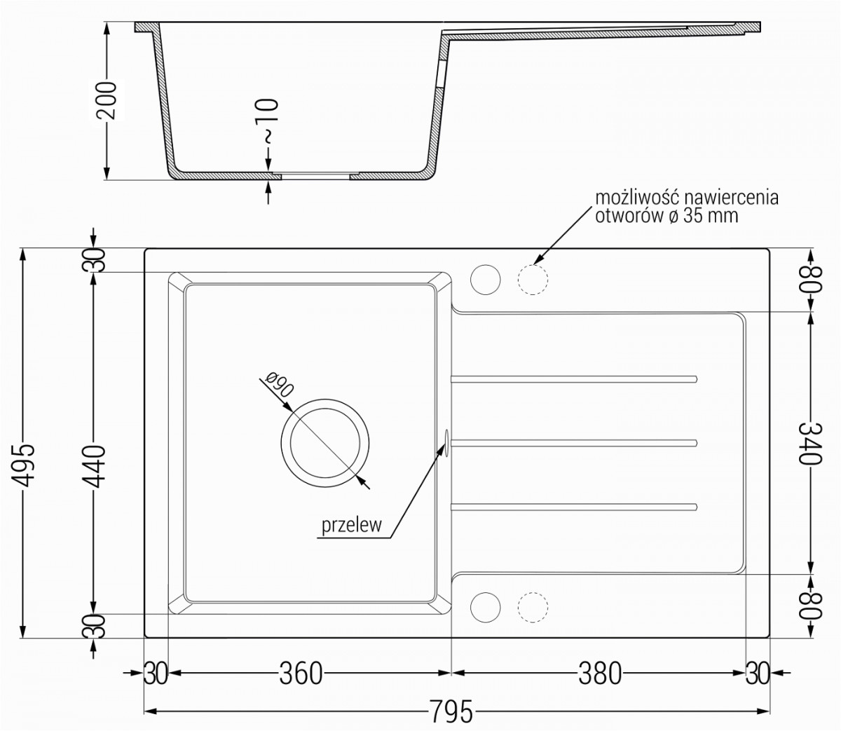 Chiuveta din granit Mexen este disponibilă și cu tavă de scurgere, cu un bazin adânc proiectat special, în culorile granulate negru, negru, bej, alb și gri. Poate fi folosit în ambele versiuni din dreapta și din stânga. Chiuveta din granit bazin Mexen cu tava de scurgere min. Poate fi instalat într-un dulap adânc de 45 cm.