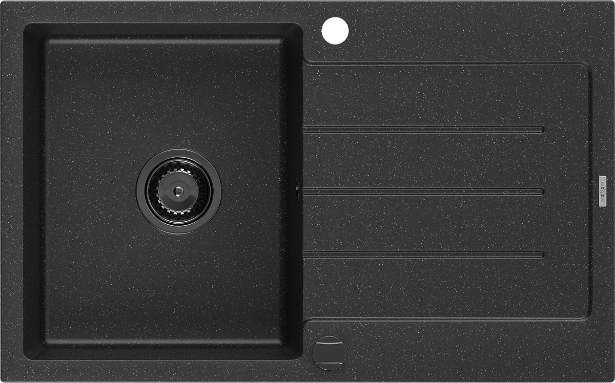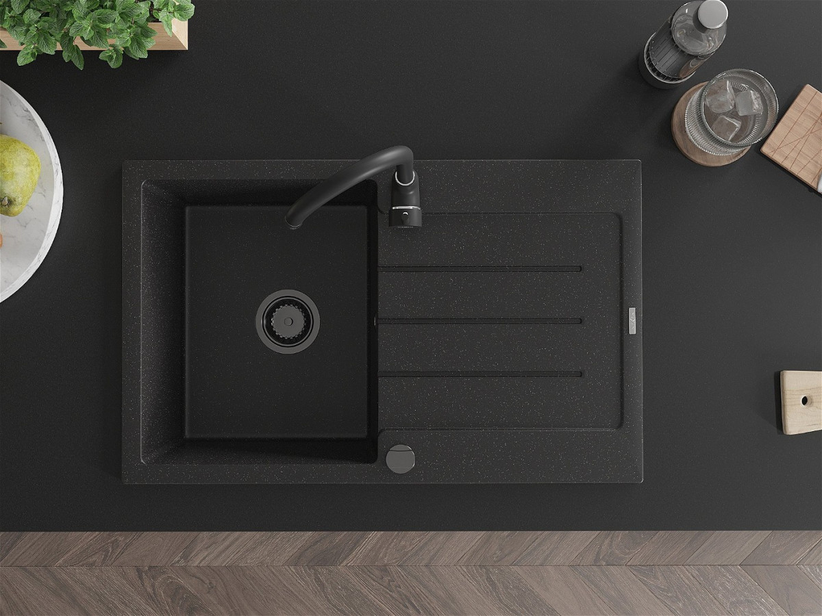 Mexen Bruno Chiuveta bucatarie granit 1 cuva + picurator+ cadou pop up sifon 795 x 495 mm, negru / chrom, sifon negru - 6513791010-73-B Prezentarea