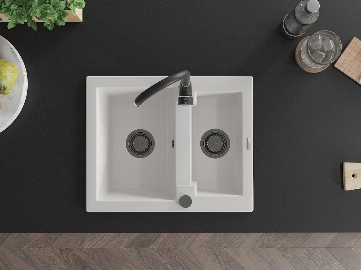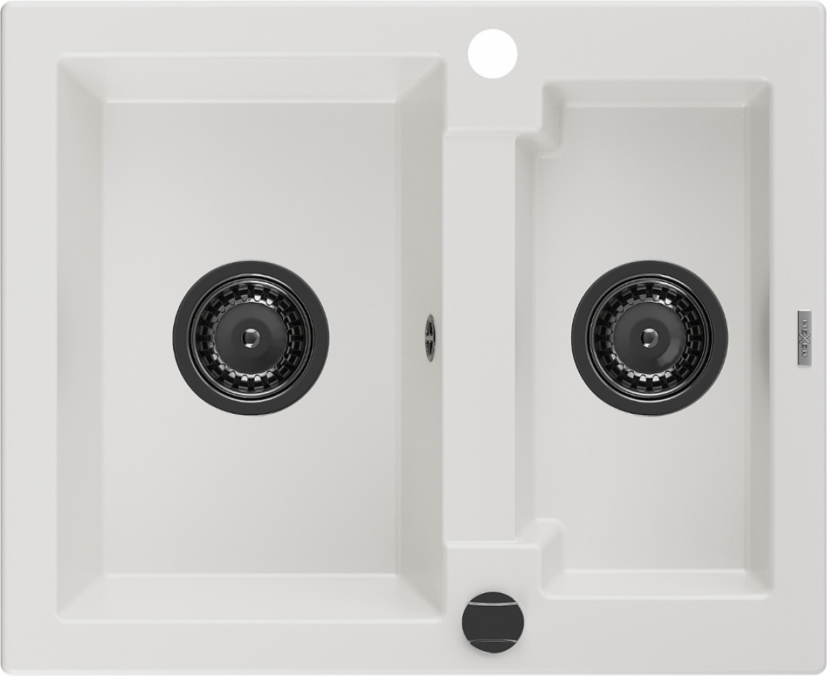 Mexen Carlos Chiuveta bucatarie granit 1,5 cuva+ cadou pop up sifon 582 x 475 mm, alb , sifon negru - 6518581500-20-B Prezentarea