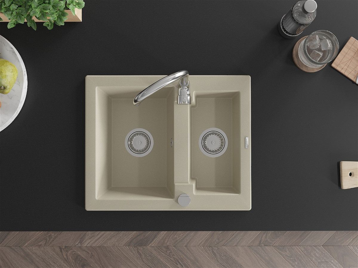 Mexen Carlos Chiuveta bucatarie granit 1,5 cuva+ cadou pop up sifon 582 x 475 mm, beige, sifon chrom - 6518581500-69 Prezentarea