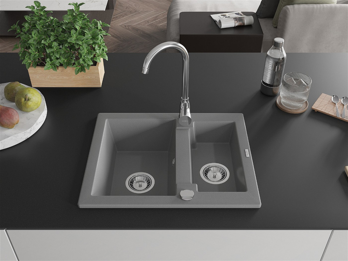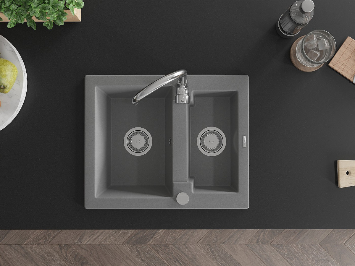 Mexen Carlos Chiuveta bucatarie granit 1,5 cuva+ cadou pop up sifon 582 x 475 mm, gri , sifon chrom - 6518581500-71 Prezentarea