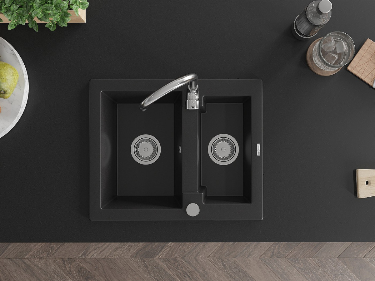 Mexen Carlos Chiuveta bucatarie granit 1,5 cuva+ cadou pop up sifon 582 x 475 mm, negru , sifon chrom - 6518581500-77 Prezentarea