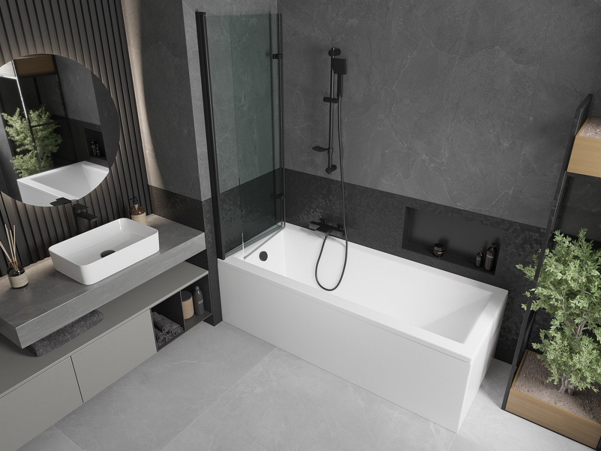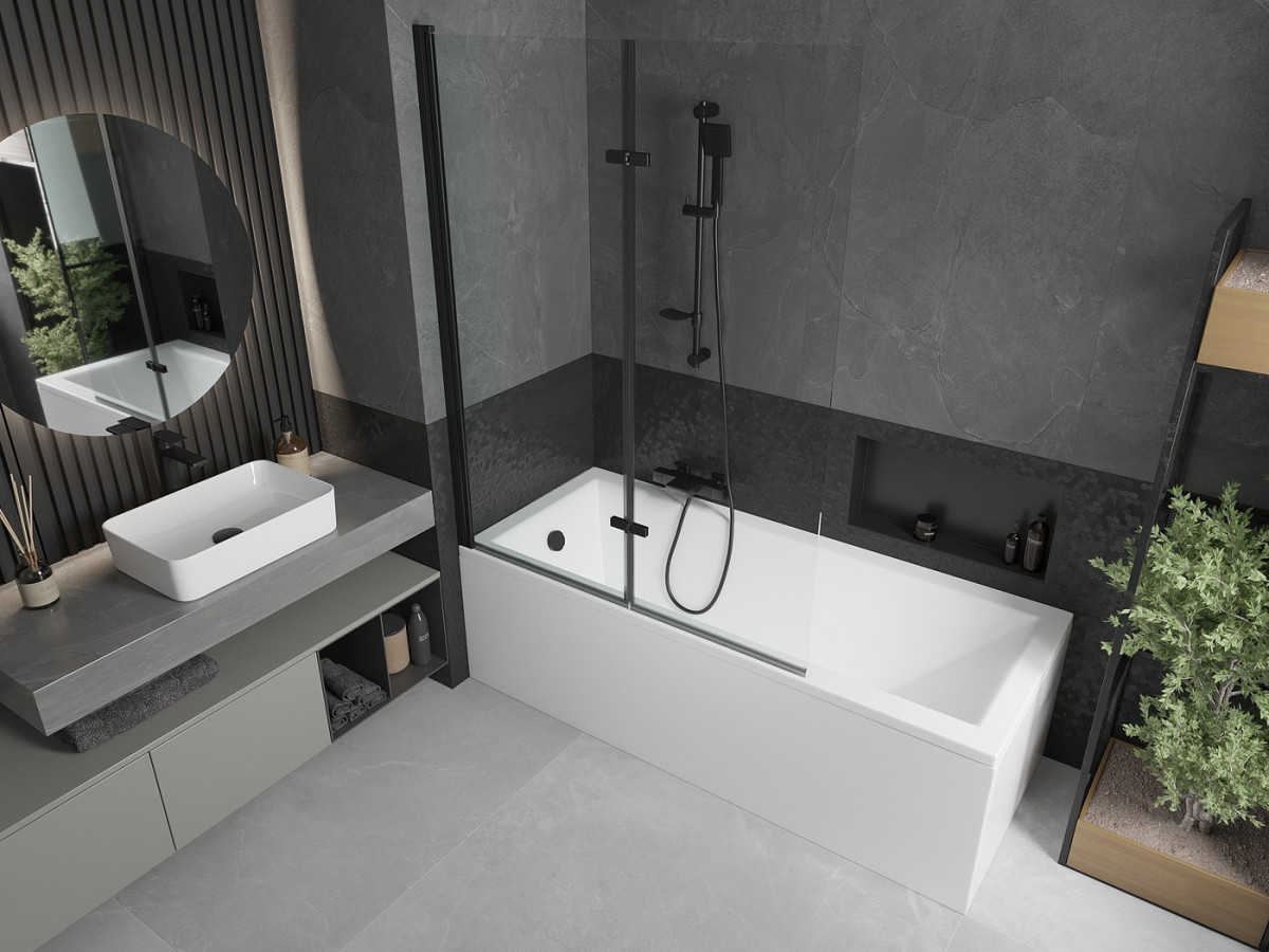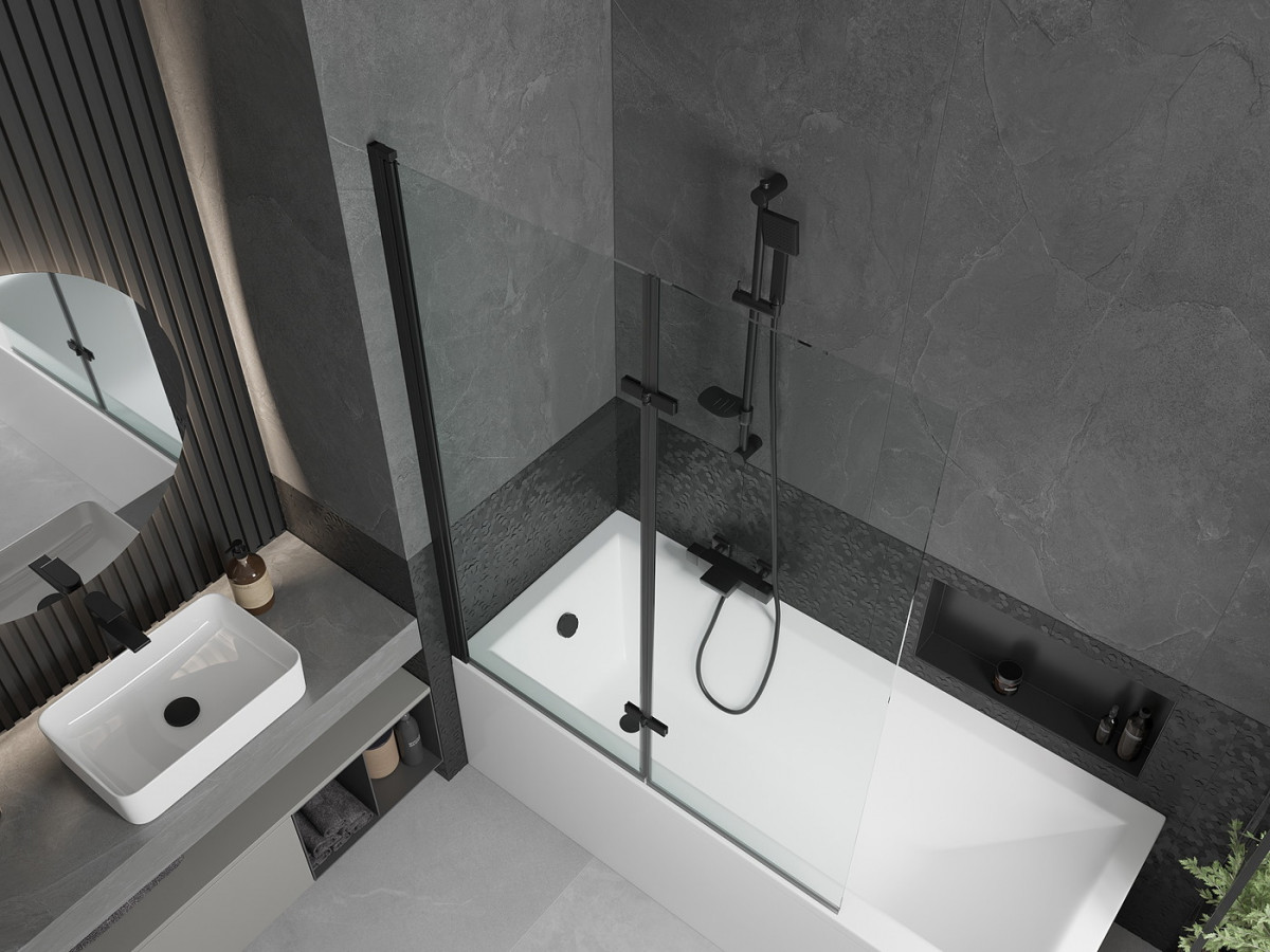 Mexen Castor  Paravan de cada  cu 2 aripi 120 x 150 cm, transparent,  negru - 892-120-002-70-00