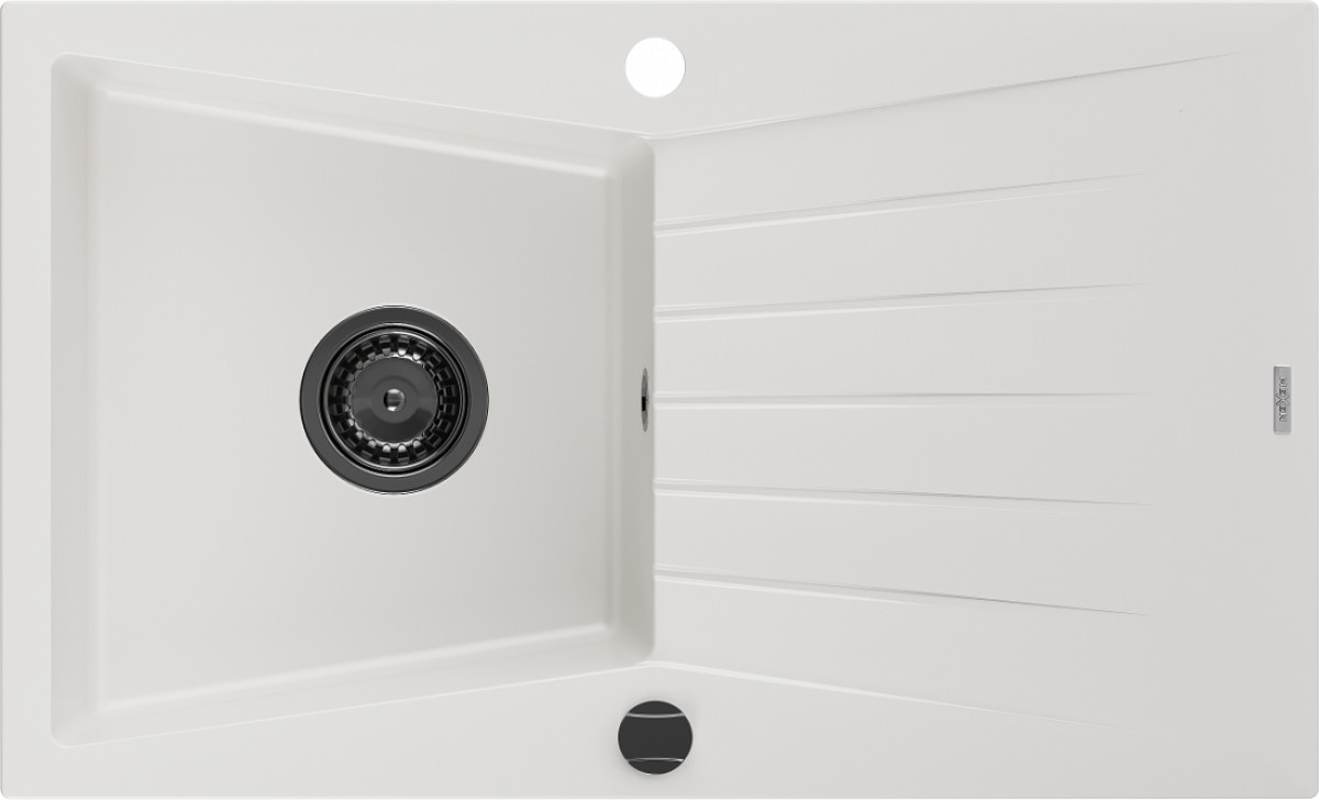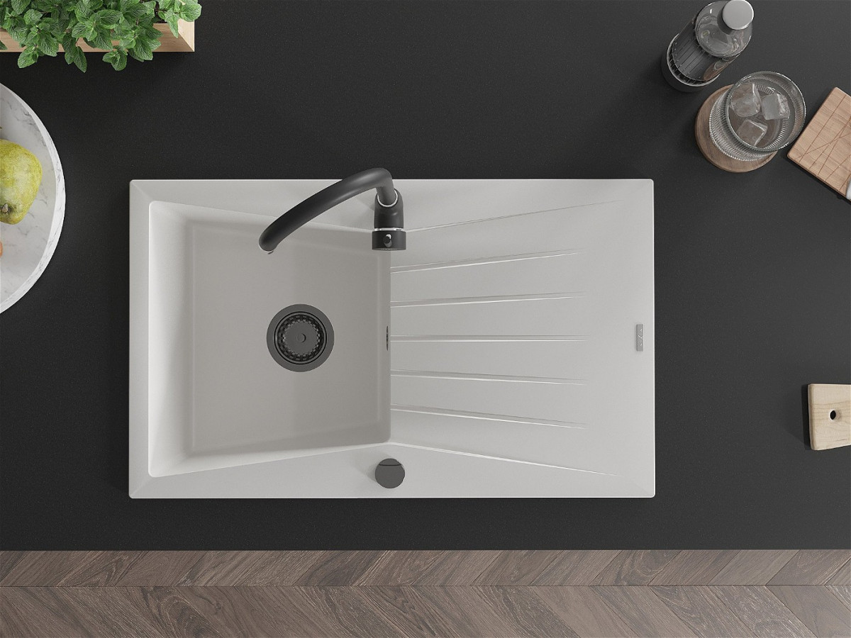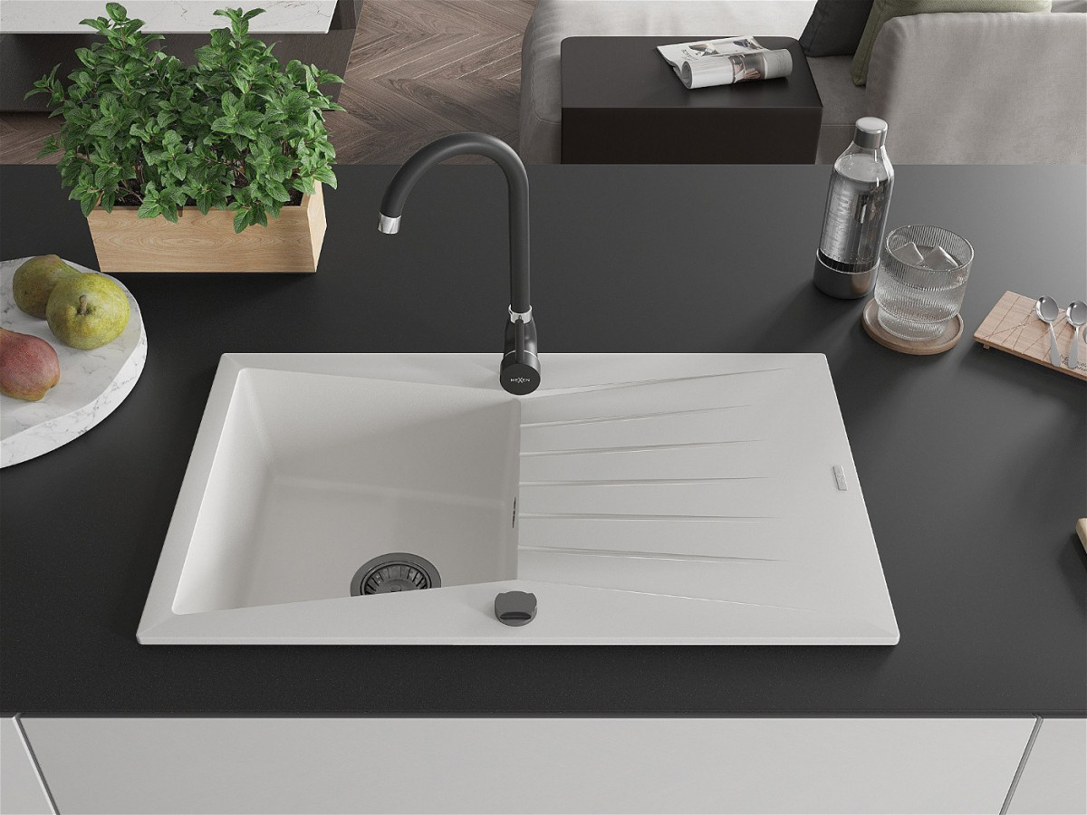 Mexen Cesar Chiuveta bucatarie granit 1 cuva + picurator+ cadou pop up sifon 775 x 470 mm, alb , sifon negru - 6514771010-20-B Prezentarea