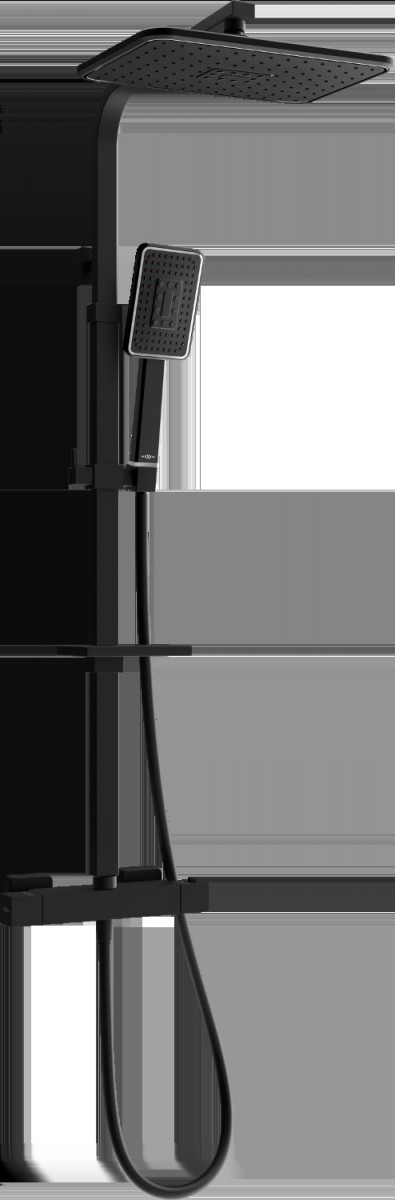 Mexen CQ54 Set de dus montat pe perete cu cap de dus cu efect de ploaie si baterie termostatica , negru/chrom - 772505495-71 Prezentarea