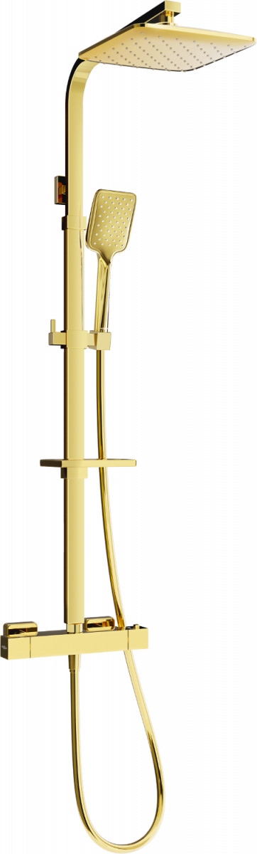Mexen CQ62  Set de  dus  montat pe perete cu cap de  dus  cu efect de ploaie si  baterie termostatica  ,  auriu - 772506295-50