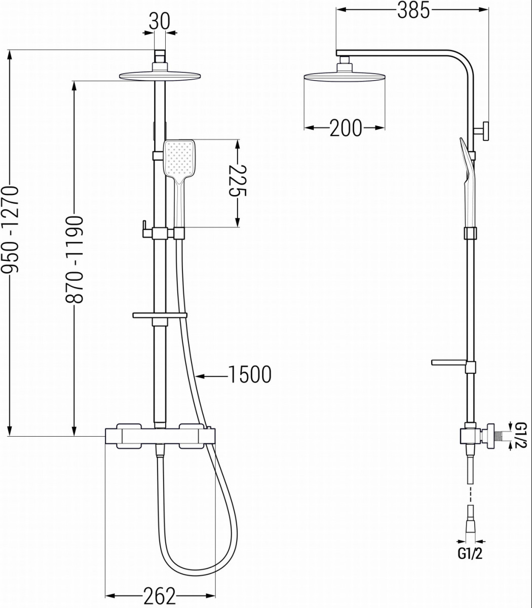 Mexen CQ62 Set de dus montat pe perete cu cap de dus cu efect de ploaie si baterie termostatica , chrom - 772506295-00 Prezentarea