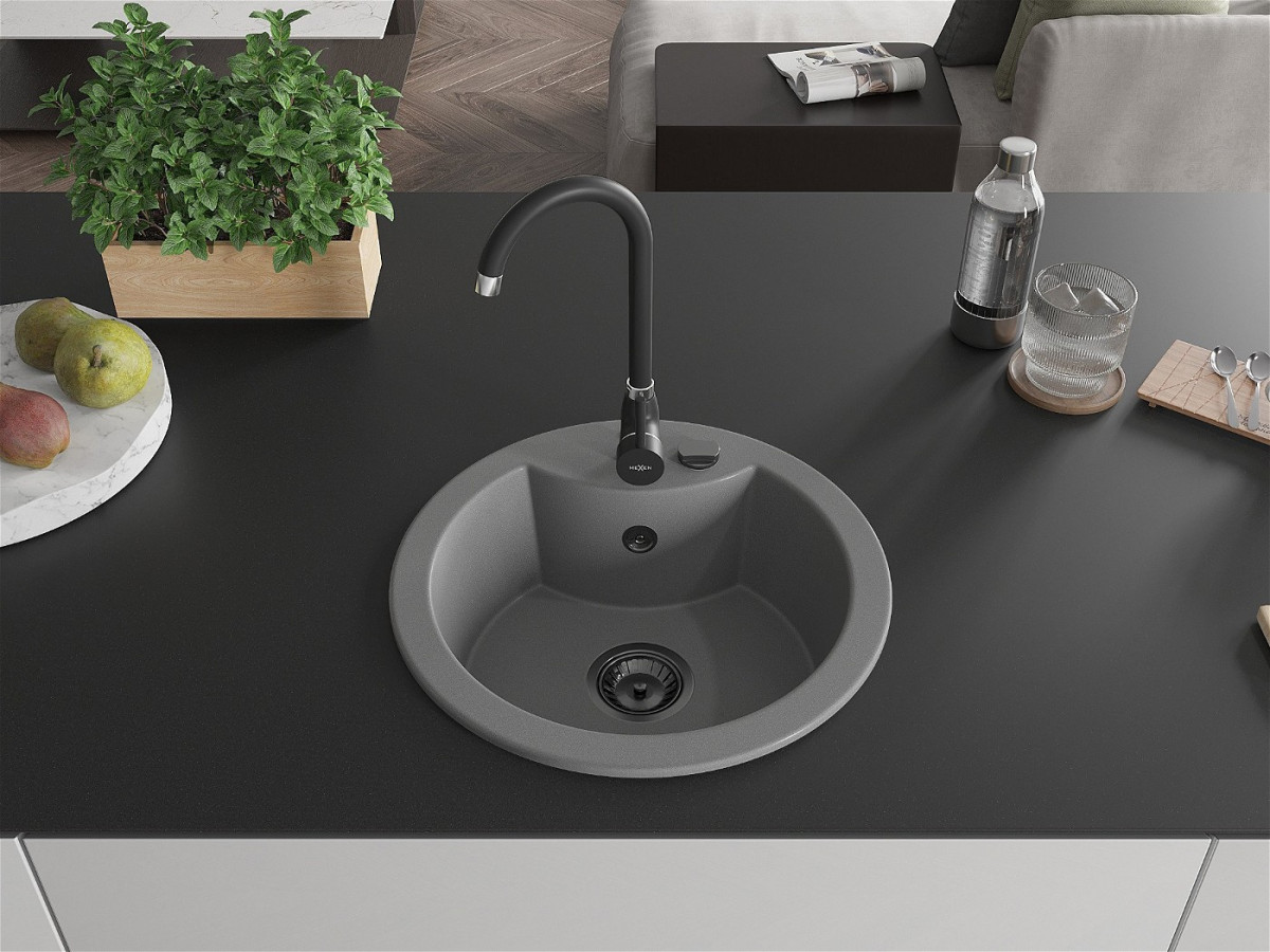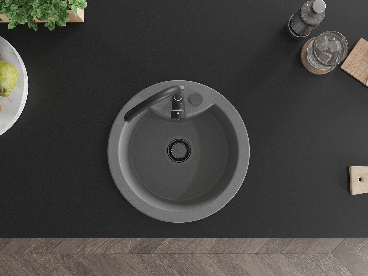 Mexen Diego Chiuveta bucatarie granit rotund+ cadou pop up sifon 488 x 480 mm, gri , sifon negru - 6512481000-71-B Prezentarea