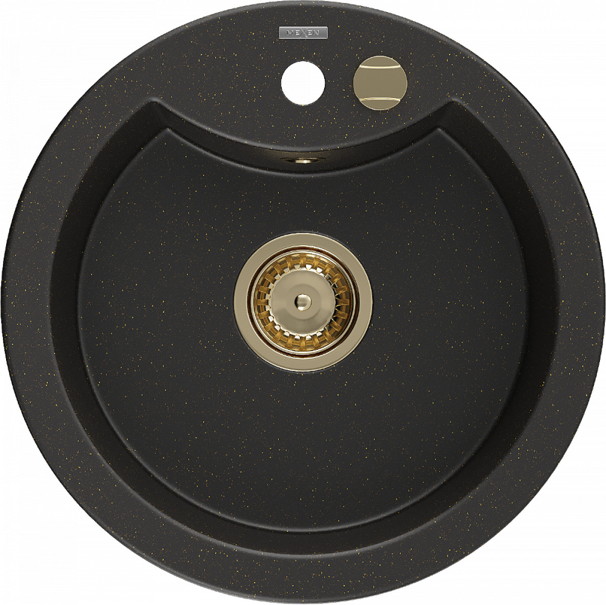 Mexen Diego Chiuveta bucatarie granit rotund+ cadou pop up sifon 488 x 480 mm, negru / auriu, sifon auriu - 6512481000-75-G