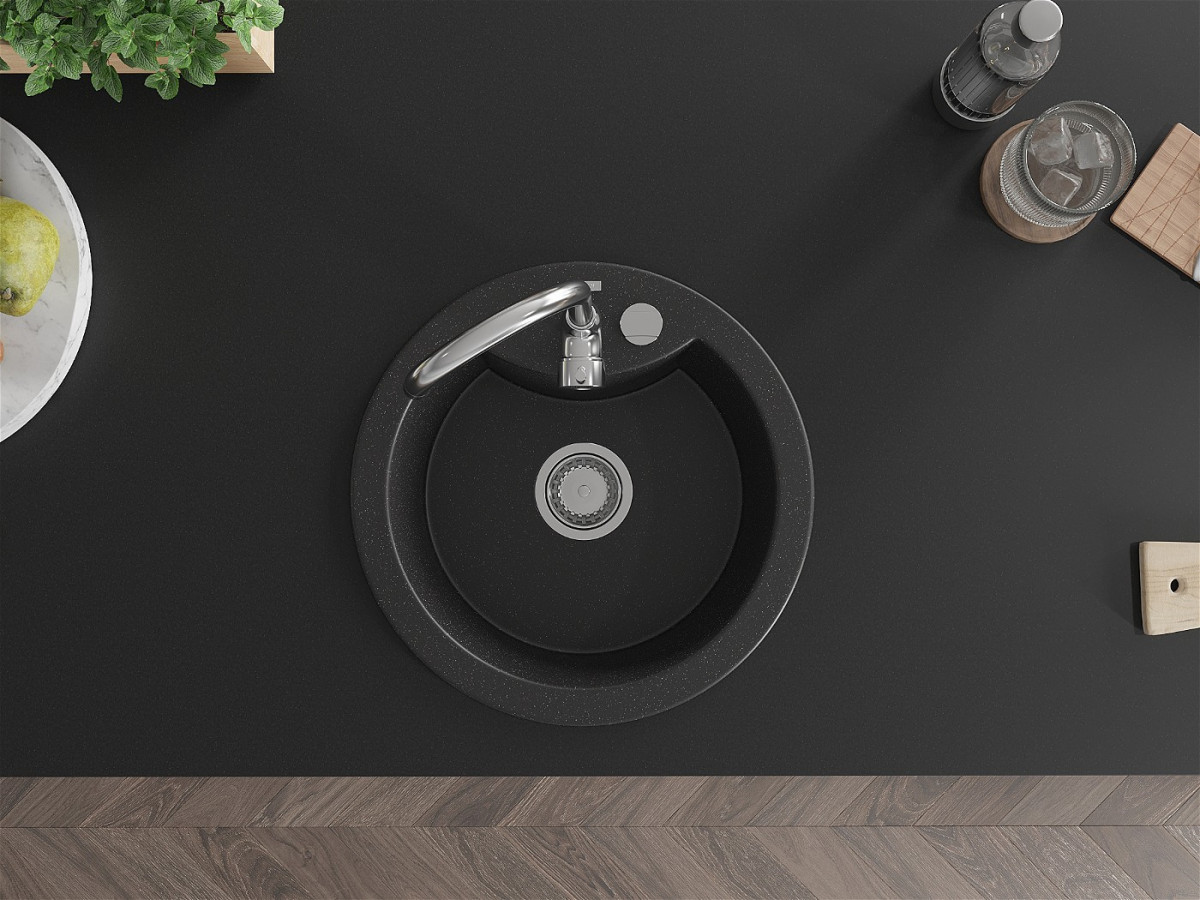 Mexen Diego Chiuveta bucatarie granit rotund+ cadou pop up sifon 488 x 480 mm, negru / chrom - 6512481000-73 Prezentarea