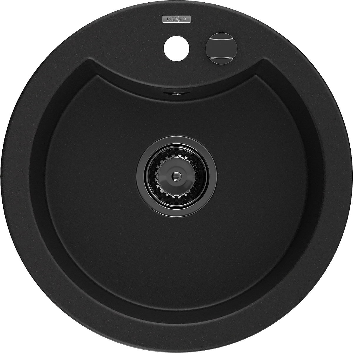 Mexen Diego Chiuveta bucatarie granit rotund+ cadou pop up sifon 488 x 480 mm, negru , sifon negru - 6512481000-77-B