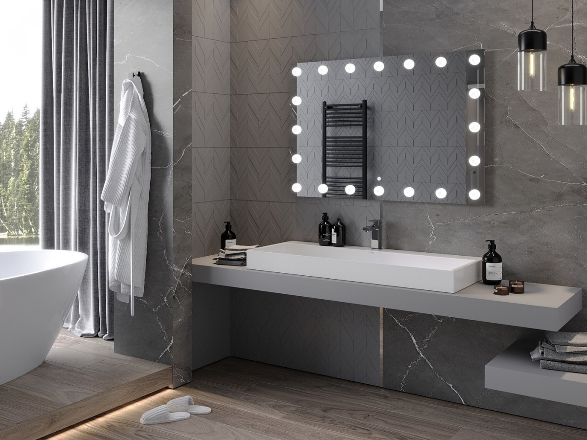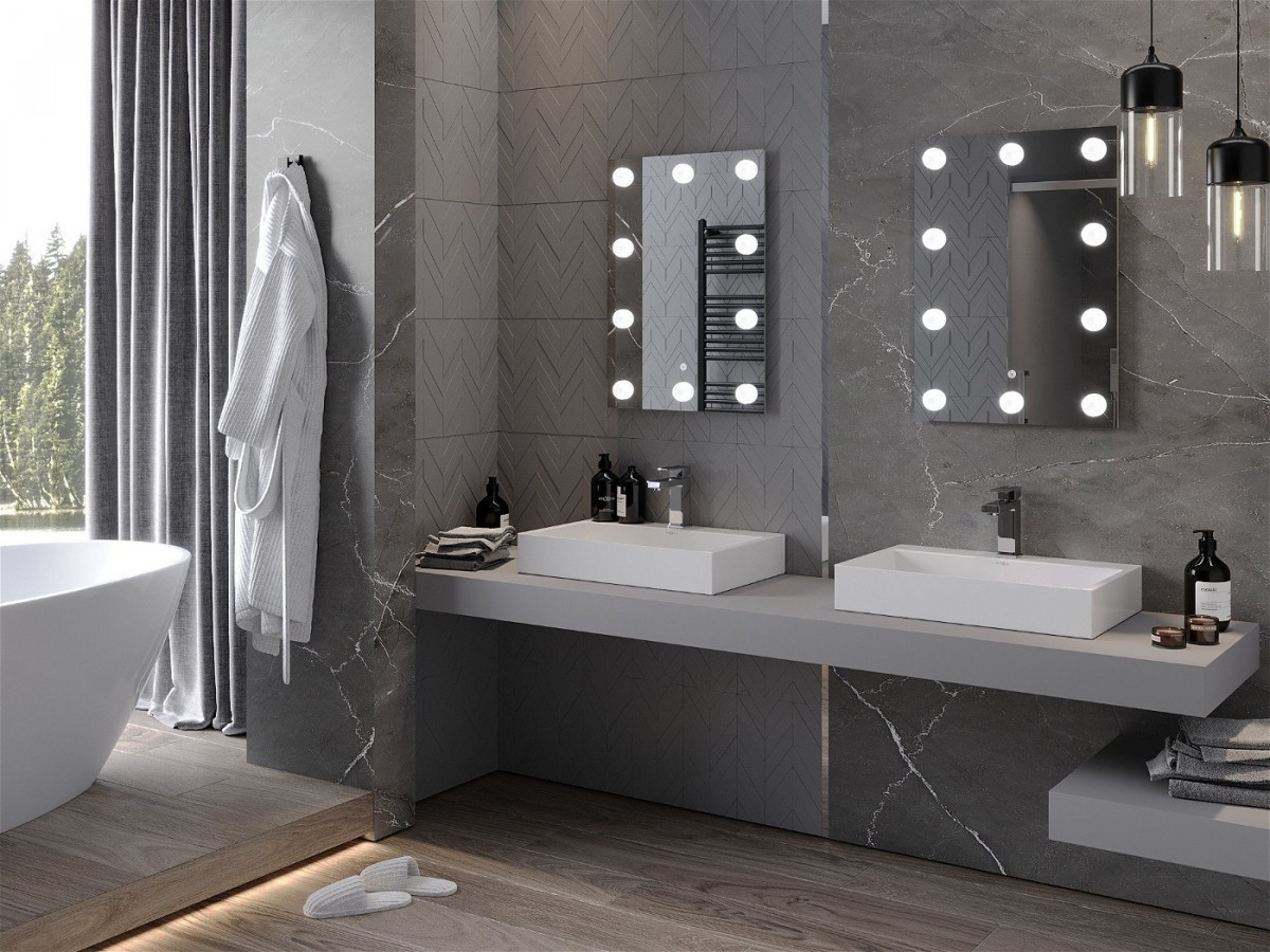 Oglinda cu LED de designer de lux, care transforma baia ta intr-un spatiu nou nu numai datorita frumusetii si caracterului practic, ci mai ales datorita accesoriului. Iluminare minunată cu funcție de dezaburire.