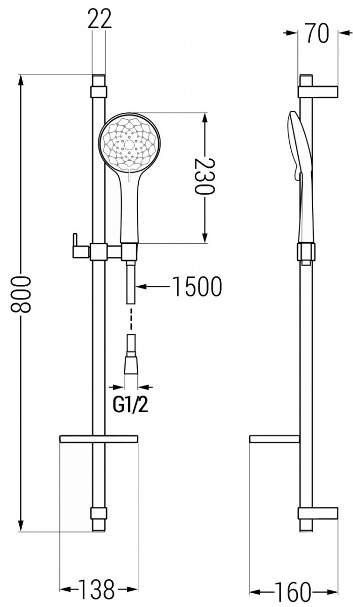 Mexen DQ74 set bara de dus , chrom - 785744581-00