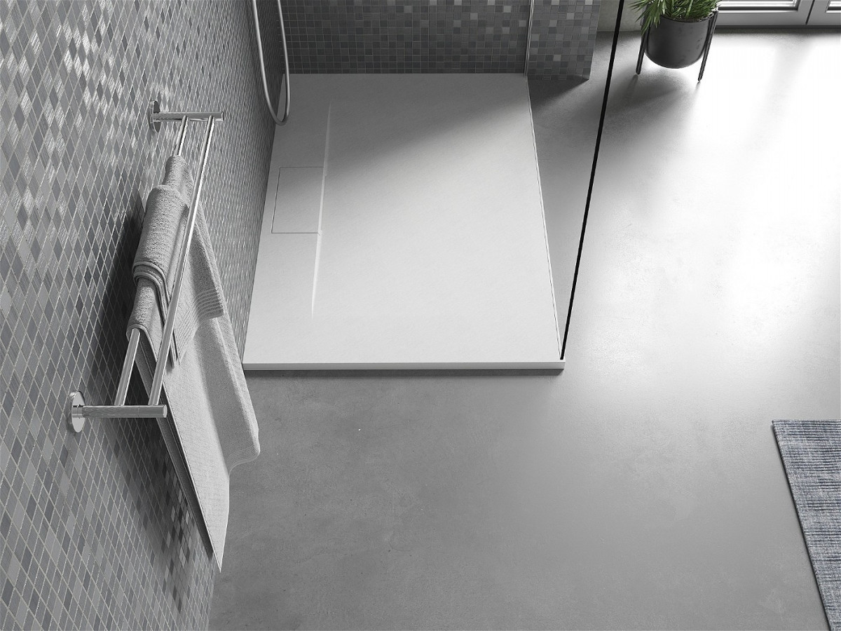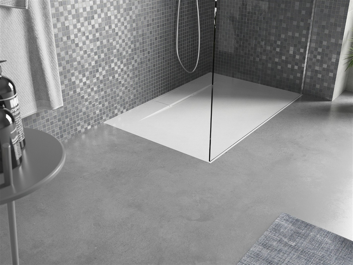CadIă de duș subțiată cu efect de piatră Metxen, care combină cele mai recente tendințe în baie cu utilizarea practică. Poate fi instalat pe podea sau înfundat în podea, creând astfel o suprafață de duș plană cu pardoseala finală.