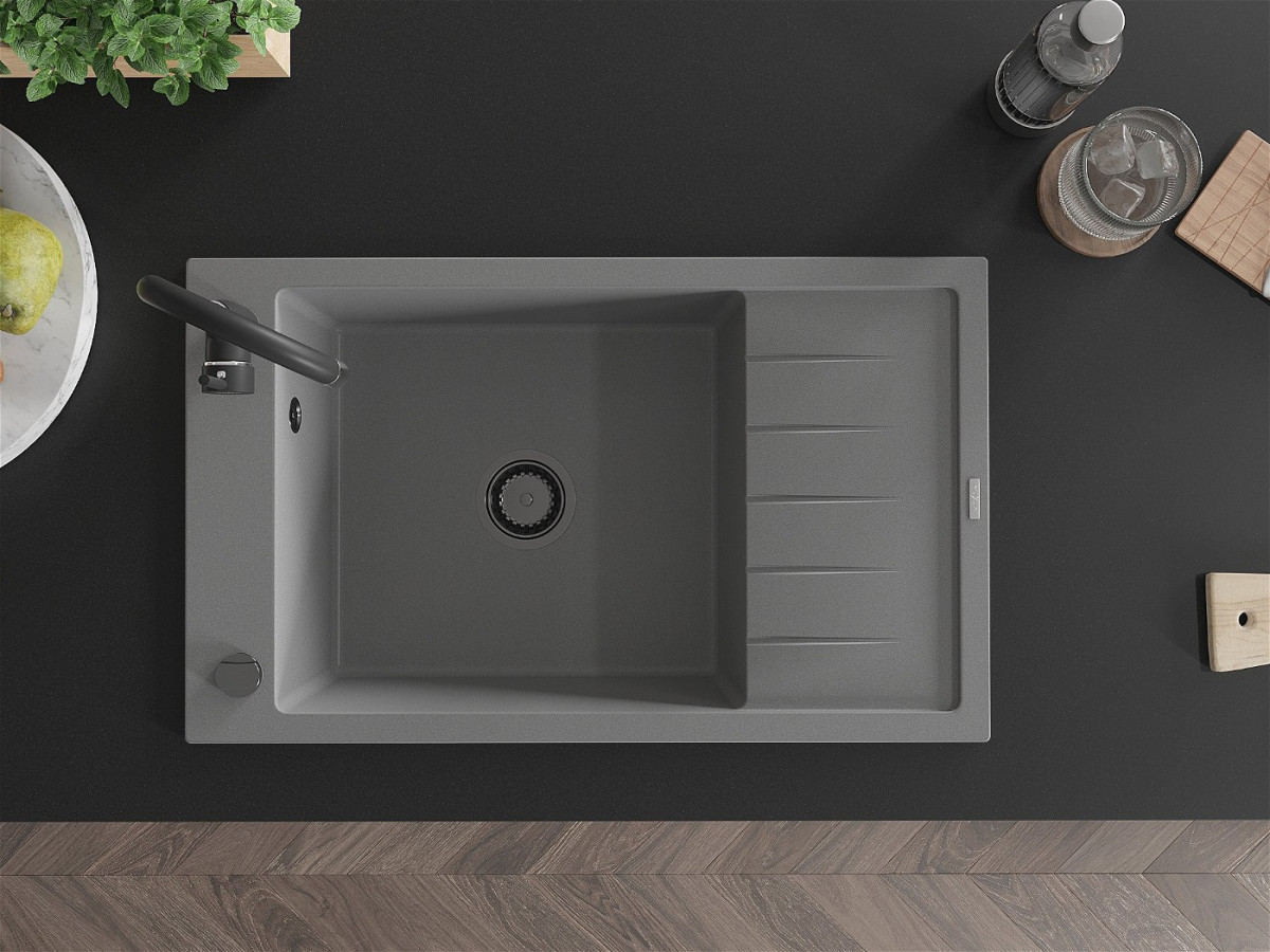 Mexen Elias Chiuveta bucatarie granit 1 cuva + picurator+ cadou pop up sifon 795 x 480 mm, gri , sifon negru - 6511791005-71-B