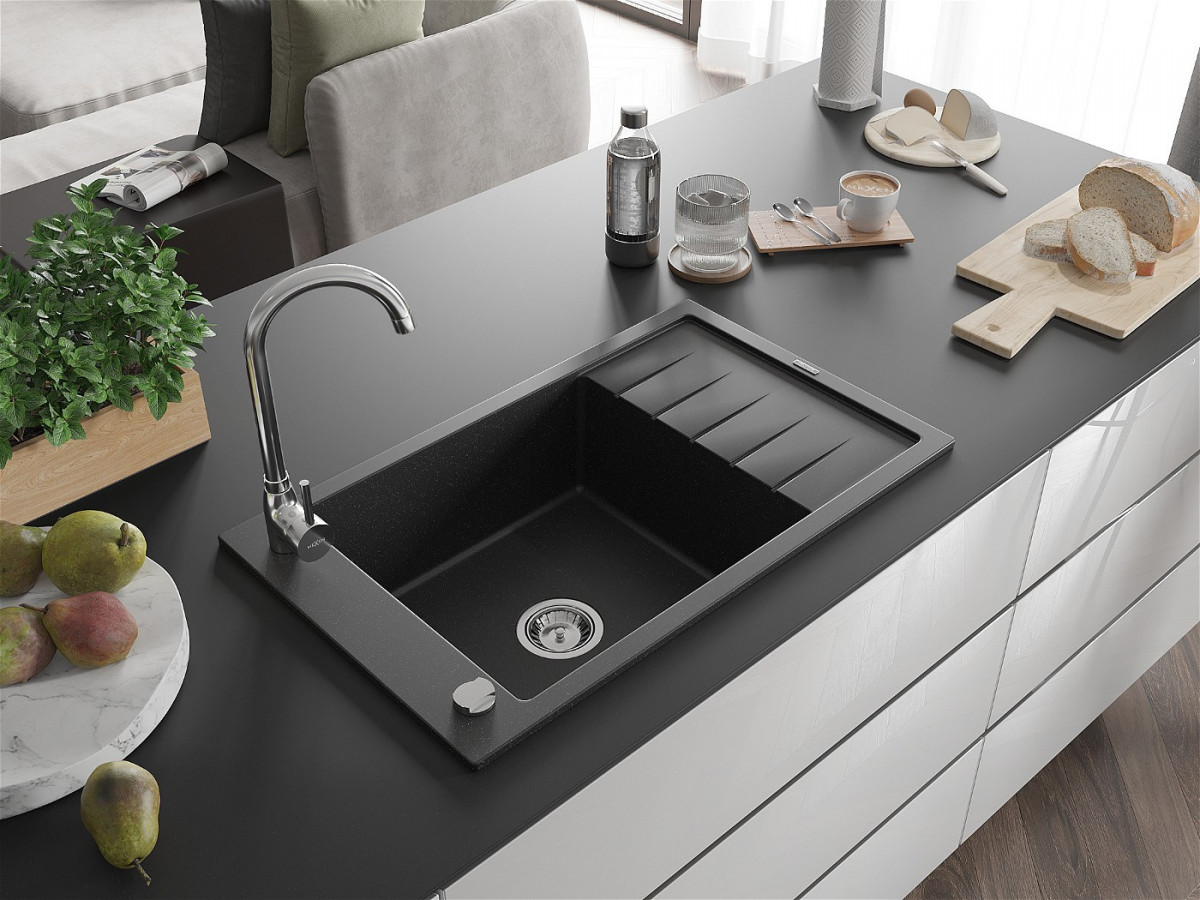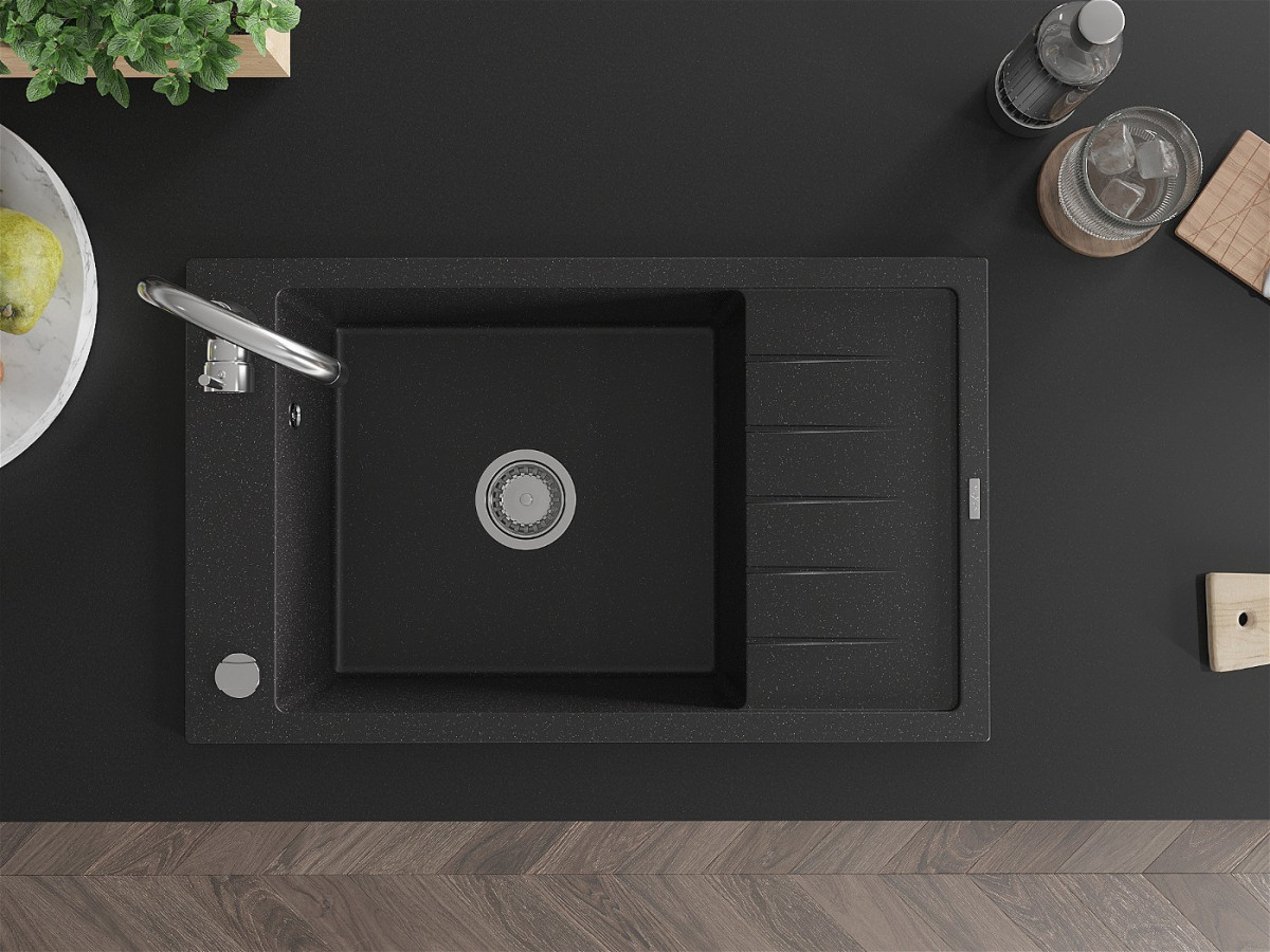 Mexen Elias Chiuveta bucatarie granit 1 cuva + picurator+ cadou pop up sifon 795 x 480 mm, negru / chrom - 6511791005-73 Prezentarea