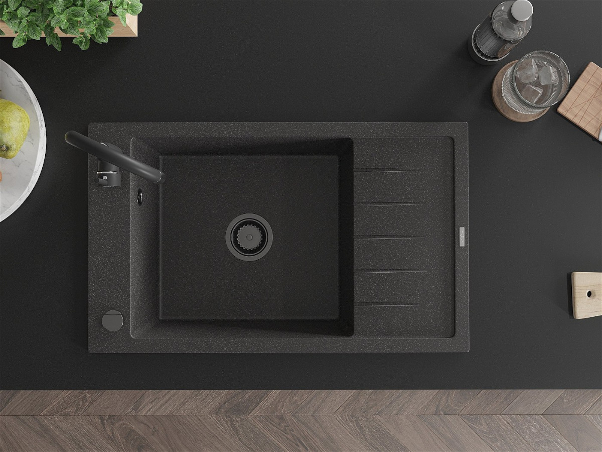 Mexen Elias Chiuveta bucatarie granit 1 cuva + picurator+ cadou pop up sifon 795 x 480 mm, negru piatra, sifon negru - 6511791005-76-B Prezentarea