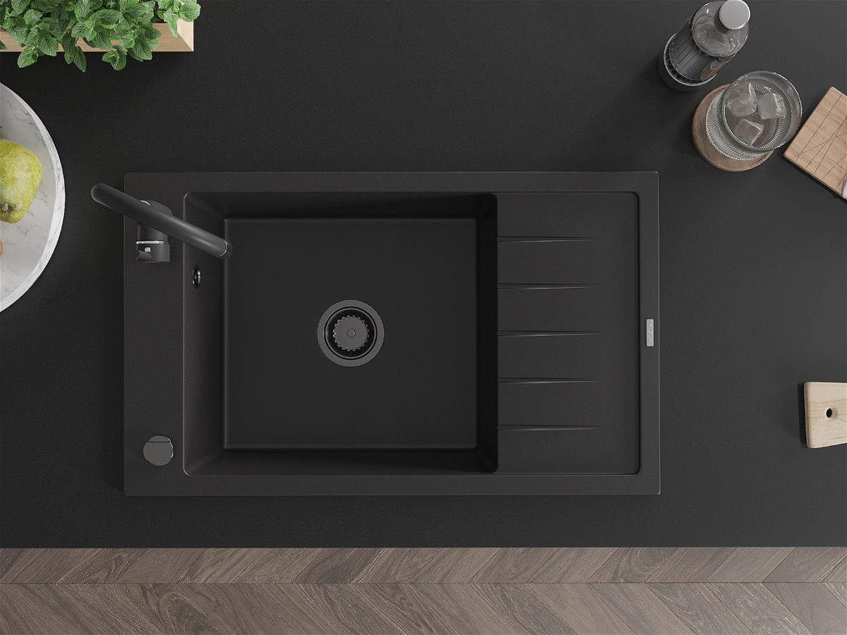 Mexen Elias Chiuveta bucatarie granit 1 cuva + picurator+ cadou pop up sifon 795 x 480 mm, negru , sifon negru - 6511791005-77-B Prezentarea