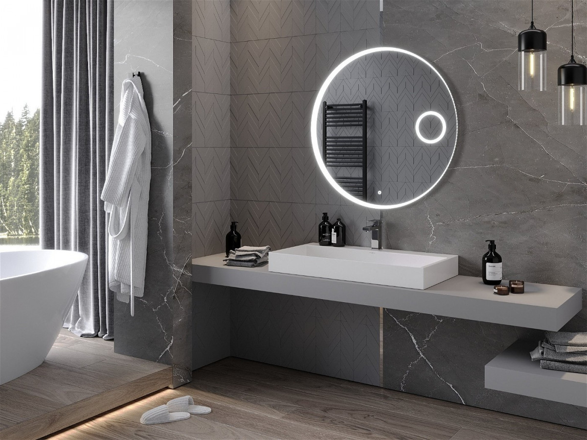 Oglinda cu LED de designer de lux, care transforma baia ta intr-un spatiu nou nu numai datorita frumusetii si caracterului practic, ci mai ales datorita accesoriului. Iluminare minunată cu funcție de dezaburire.