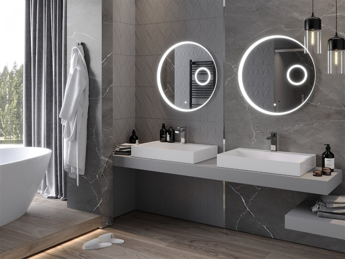 Oglinda cu LED de designer de lux, care transforma baia ta intr-un spatiu nou nu numai datorita frumusetii si caracterului practic, ci mai ales datorita accesoriului. Iluminare minunată cu funcție de dezaburire.