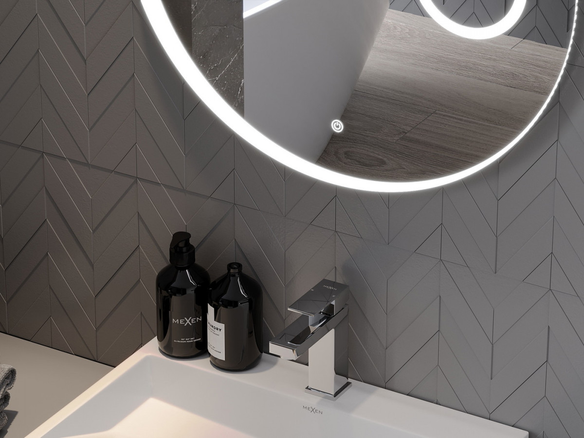 Mexen Ella Oglinda de baie iluminata cu cosmetica option, rotunda 70 cm, LED 6000K, cu dezaburire-9811-070-070-611-00 Prezentarea