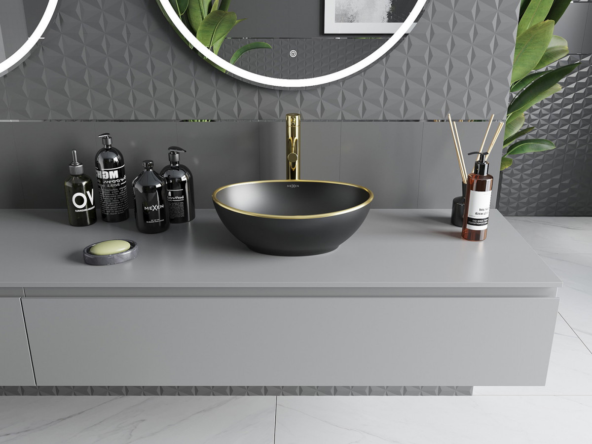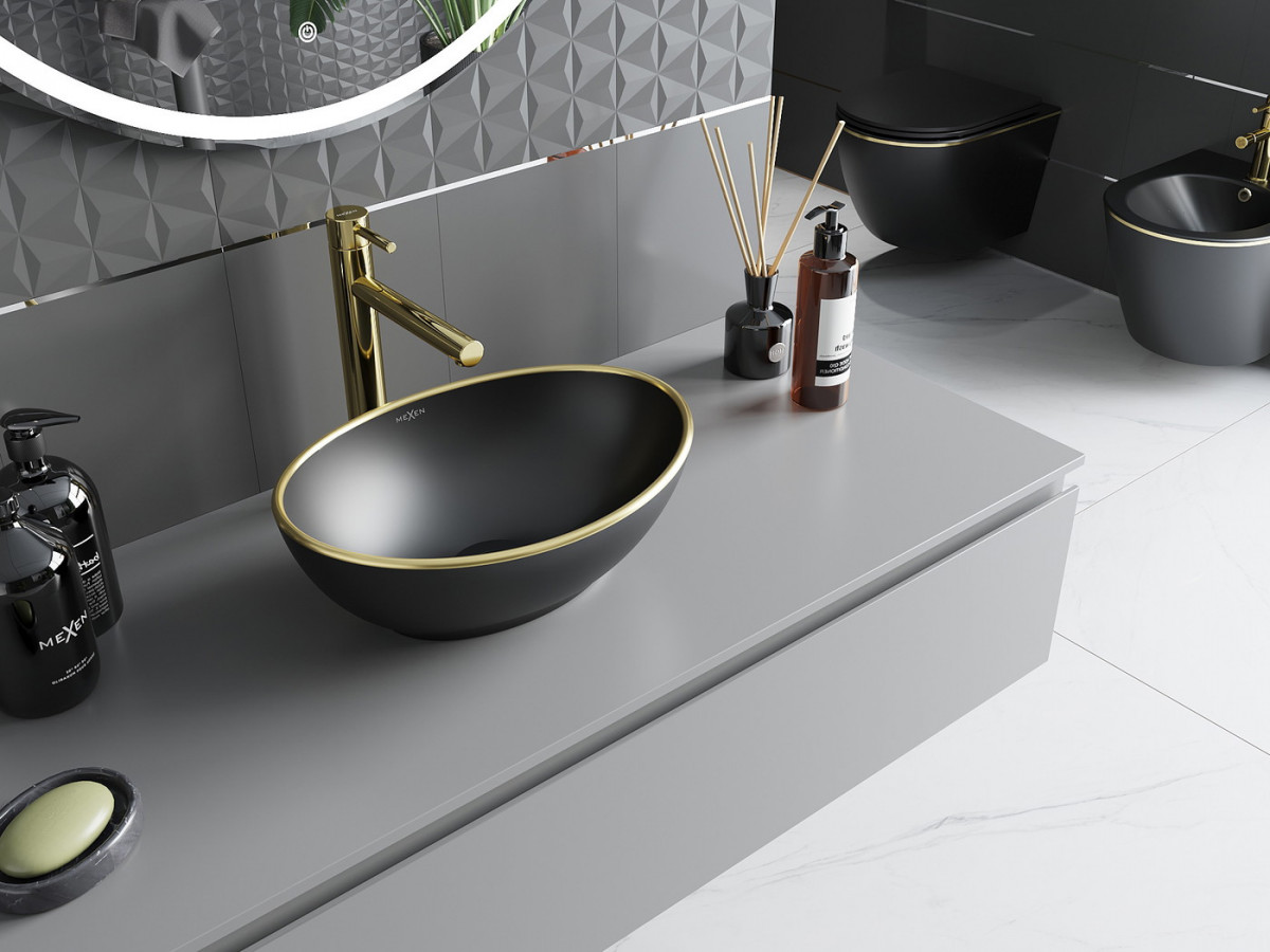 Mexen Elza Lavoar pe blat 40 x 33 cm, negru mat/auriu - 21014025 Prezentarea