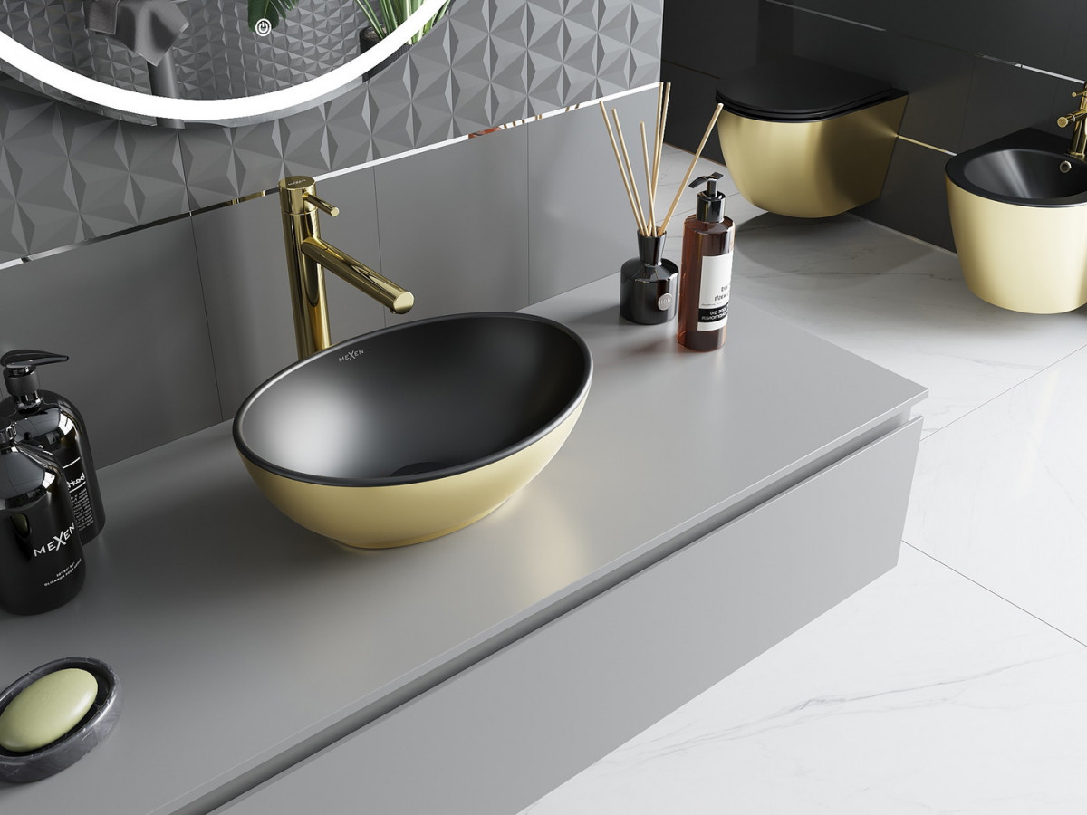 Mexen Elza Lavoar pe blat 40 x 33 cm, negru mat/auriu - 21014026 Prezentarea