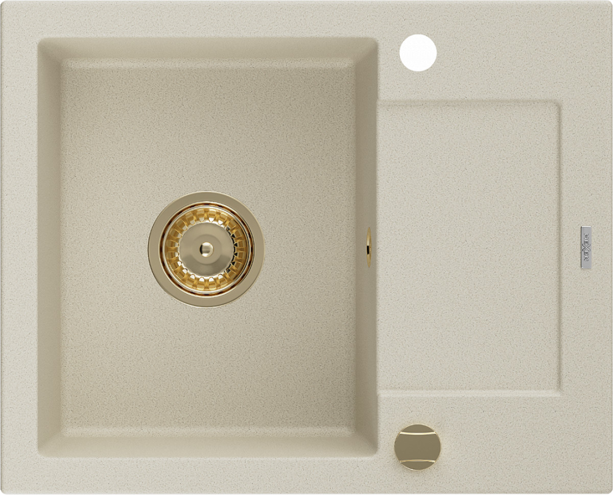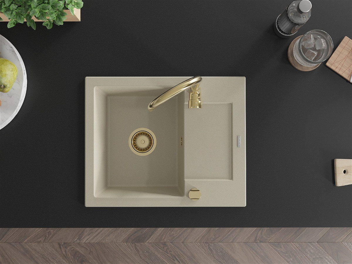 Mexen Enzo Chiuveta bucatarie granit 1 cuva + picurator+ cadou pop up sifon 576 x 465 mm, beige, sifon auriu - 6506571005-69-G