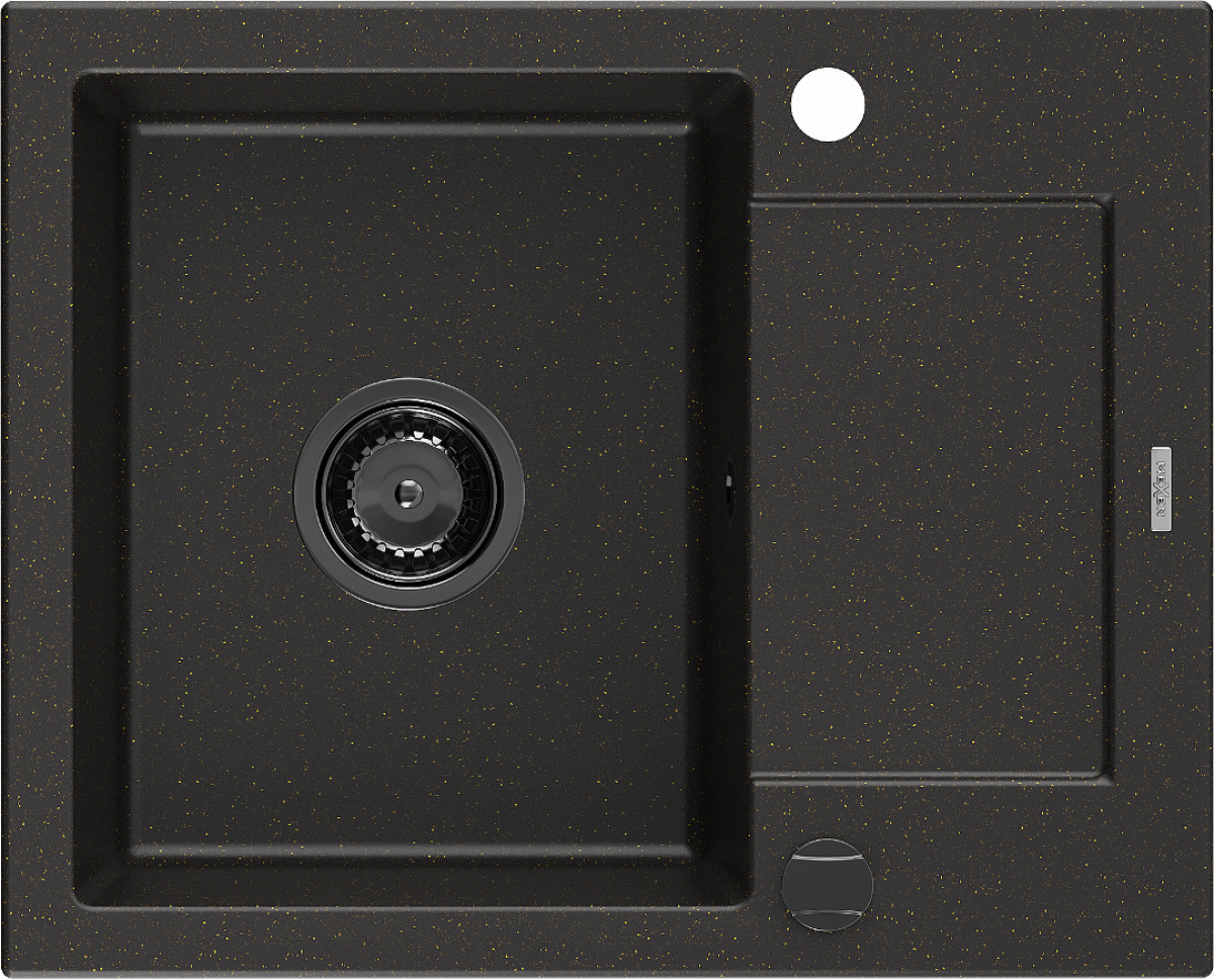 Mexen Enzo Chiuveta bucatarie granit 1 cuva + picurator+ cadou pop up sifon 576 x 465 mm, negru / auriu, sifon negru - 6506571005-75-B Prezentarea